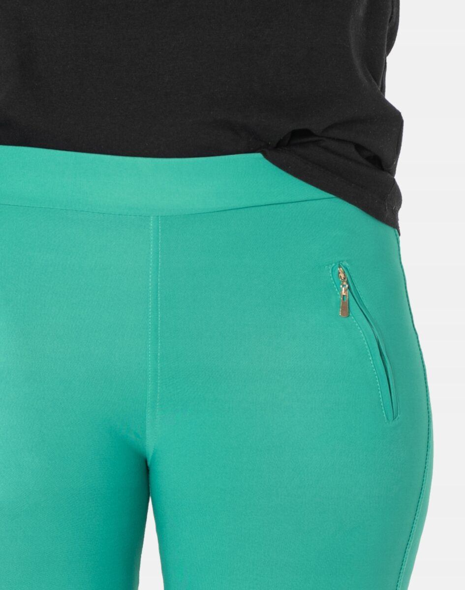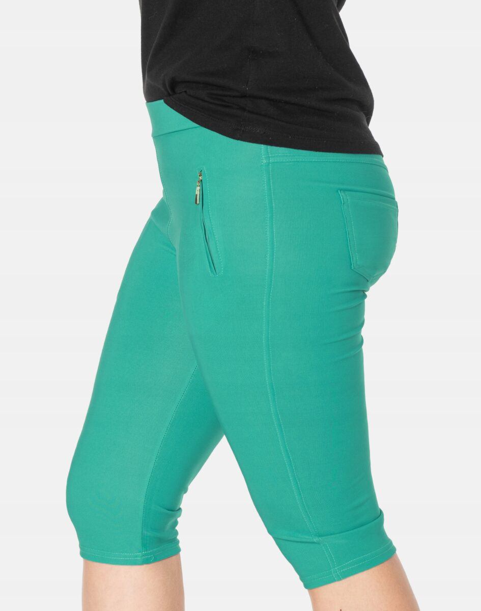Spodenki damskie Capri L701 to komfortowo skrojony model o wyszczuplającym optycznie kobiecą sylwetkę fasonie i wyższym stanie. Na bokach mają dwie wpuszczane, skośne kieszenie na dłonie zasuwane na zamki błyskawiczne. Z tyłu dwie kieszonki naszywane. Dopasowanie w pasie zapewnia szeroki, elastyczny pas wyszczuplający, który zgrabnie modeluje sylwetkę w talii. Nie mają żadnego zamka, guzików ani niewygodnych szwów. Uniwersalny, zawsze modny krój z wąską dopasowaną nogawką i wyższym stanem, które założysz na wiele różnych okazji.