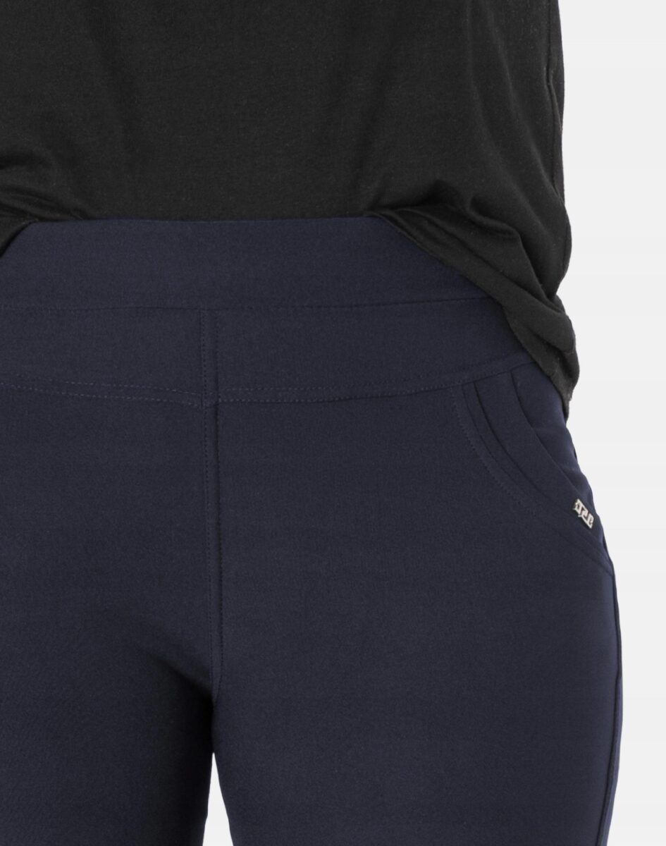 - Nogawka: dopasowana, zwężana