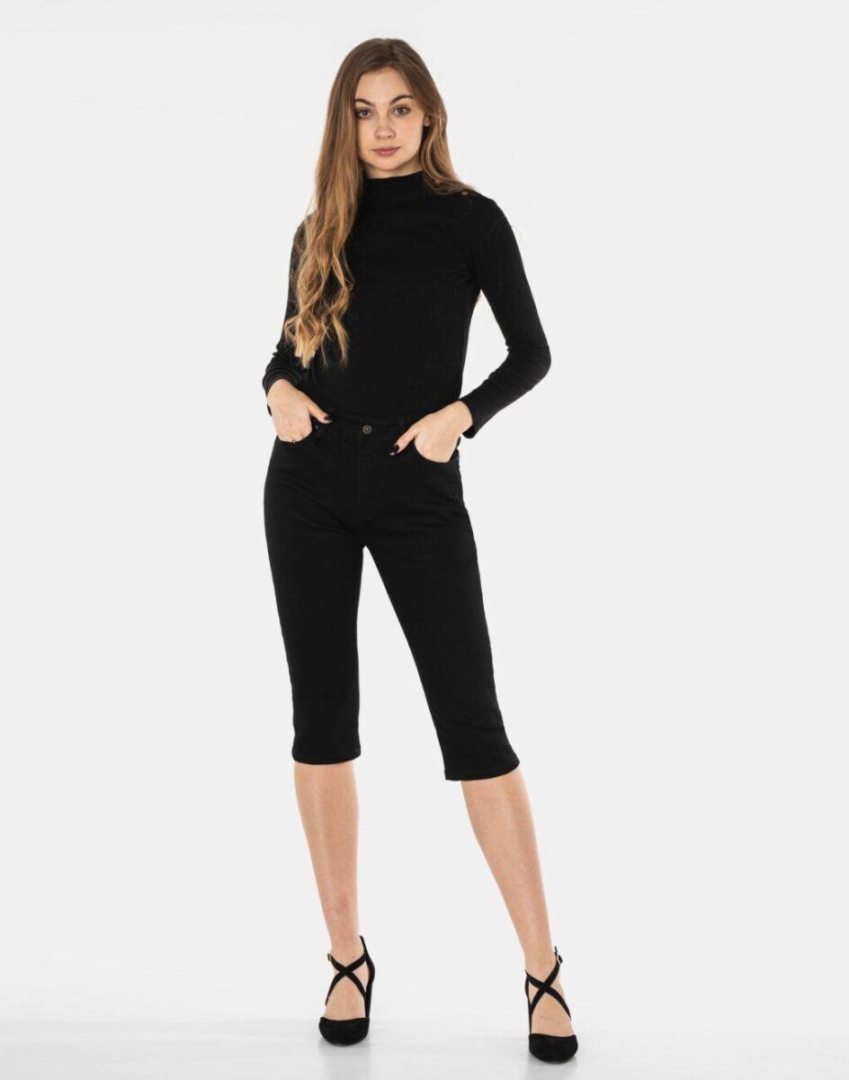 Czarne Spodnie Rybaczki 3/4 Damskie