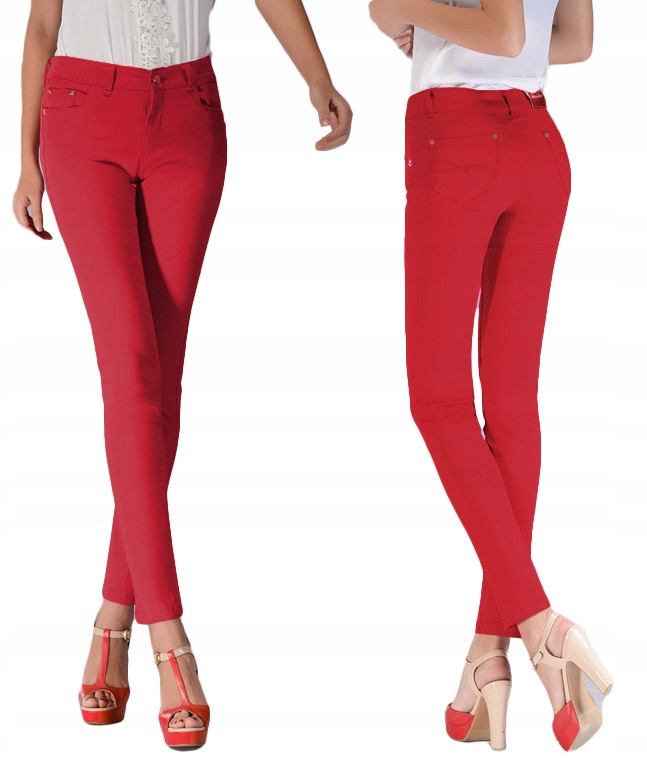 Eleganckie spodnie damskie bawełniane z wyższym stanem i wąską, dopasowaną nogawką to jeden z najczęściej wybieranych przez modne kobiety modeli spodni. Wykonane z wysokiej jakości cienkiej tkaniny bawełnianej o jednolitym wybarwieniu z dodatkiem lycry (elastan). Niewielki dodatek lycry sprawia że spodnie są bardziej elastyczne i doskonale dopasowują się do każdej sylwetki. Pozwalają na pełną swobodę ruchów co daje użytkownikowi wygodę przy siadaniu i zapewnia ogromny komfort noszenia. Zapinane są na kryty zamek błyskawiczny i metalowy guzik sygnowany logiem firmy. Z przodu mają dwie kieszonki zaokrąglone oraz mniejszą kieszonkę tzw. bilonówkę, a na tyle klasyczne kieszenie naszywane jak w typowych spodniach jeansowych. W pasie szlufki umożliwiające stylizacje z paskiem. Najbardziej podatne na uszkodzenia miejsca wzmocnione są dodatkowymi przeszyciami i ozdobnymi nitami.