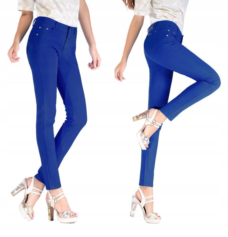 Eleganckie spodnie damskie bawełniane z wyższym stanem i wąską, dopasowaną nogawką to jeden z najczęściej wybieranych przez modne kobiety modeli spodni. Wykonane z wysokiej jakości cienkiej tkaniny bawełnianej o jednolitym wybarwieniu z dodatkiem lycry (elastan). Niewielki dodatek lycry sprawia że spodnie są bardziej elastyczne i doskonale dopasowują się do każdej sylwetki. Pozwalają na pełną swobodę ruchów co daje użytkownikowi wygodę przy siadaniu i zapewnia ogromny komfort noszenia. Zapinane są na kryty zamek błyskawiczny i metalowy guzik sygnowany logiem firmy. Z przodu mają dwie kieszonki zaokrąglone oraz mniejszą kieszonkę tzw. bilonówkę, a na tyle klasyczne kieszenie naszywane jak w typowych spodniach jeansowych. W pasie szlufki umożliwiające stylizacje z paskiem. Najbardziej podatne na uszkodzenia miejsca wzmocnione są dodatkowymi przeszyciami i ozdobnymi nitami.