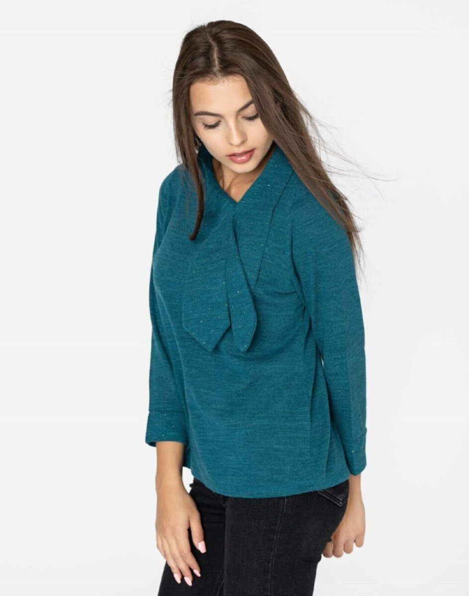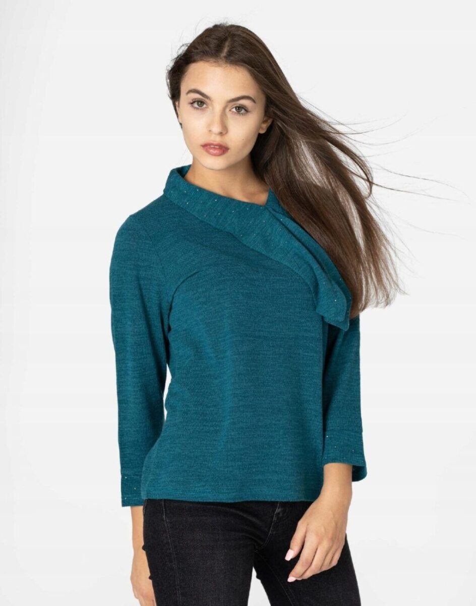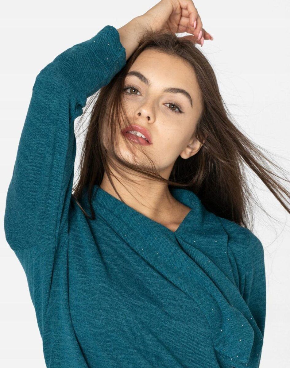 To propozycja do casualowego looku w którym możemy pozwolić sobie na odrobinę luzu, a także do eleganckiej stylizacji w której musimy postawić na szyk i klasę. Luźny krój sweterka pozwala zamaskować brzuch i boczki a szerokie rękawy 3/4 zakończone mankietem to nie tylko prestiżowy wygląd ale duża swoboda podczas ruchu. Efektowny szalokołnierz z możliwością wiązania na różne sposoby sprawia, że kreacja za każdym razem może wyglądać zupełnie inaczej. Elegancki, wygodny i bardzo zmysłowy, stworzony z myślą o Paniach, które od odzieży oczekują subtelnego stylu i niepowtarzalnego design’u. Ten wyjątkowy element kobiecej garderoby może być jednocześnie idealnym tłem dla każdej biżuterii jak i najbardziej charakterystyczną częścią ubioru i idealnie pasuje niemal do wszystkiego – a my, kobiety, uwielbiamy takie rozwiązania.