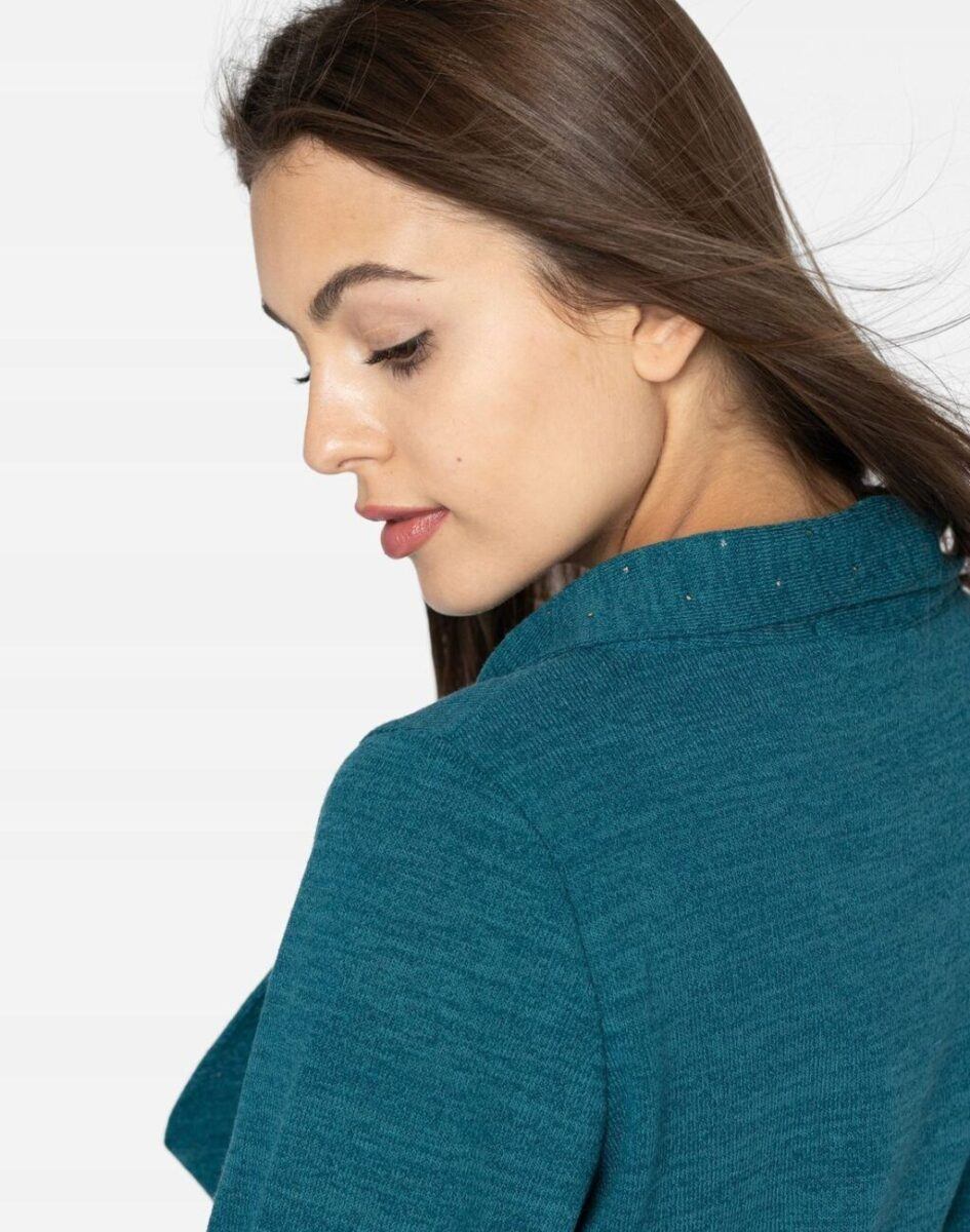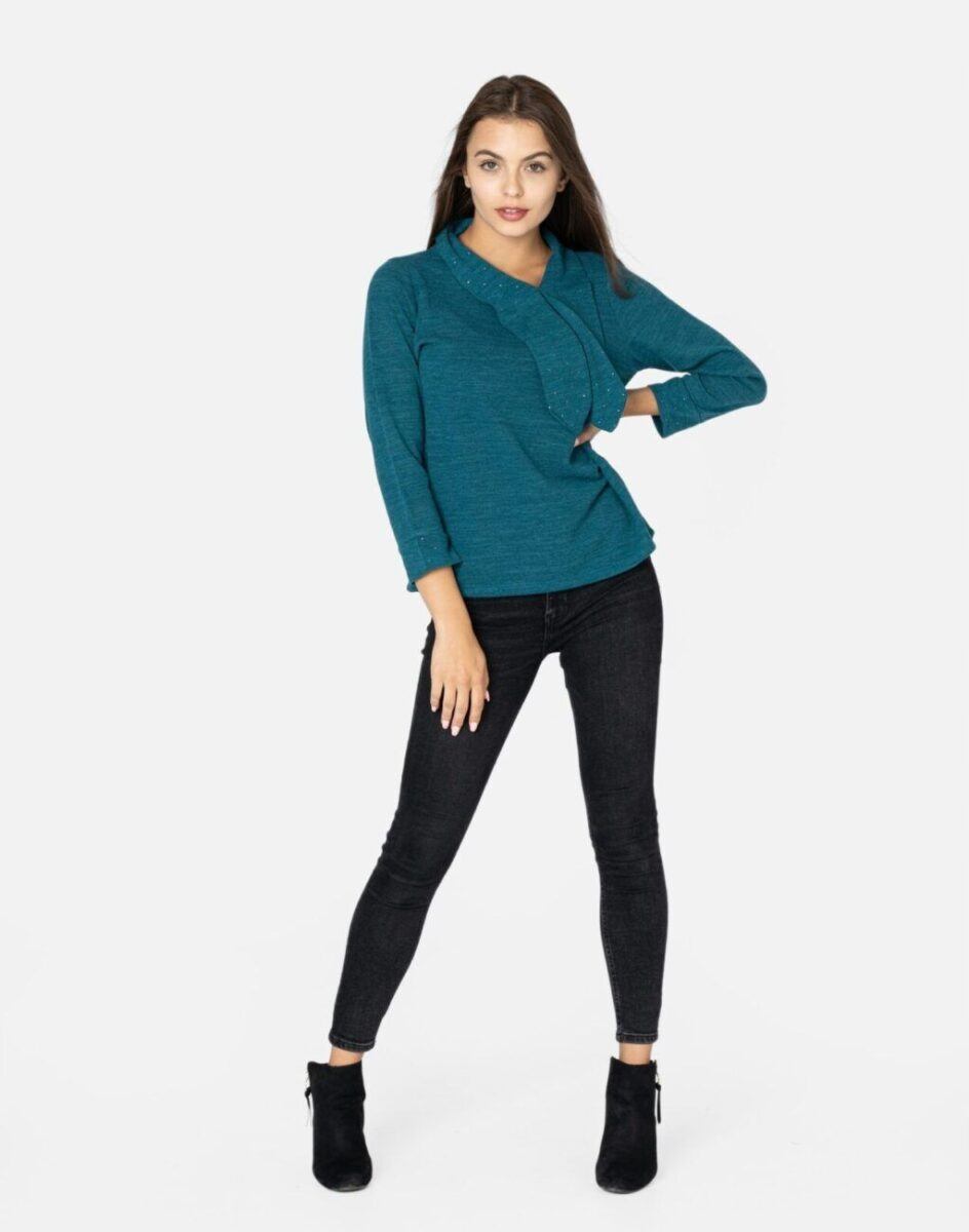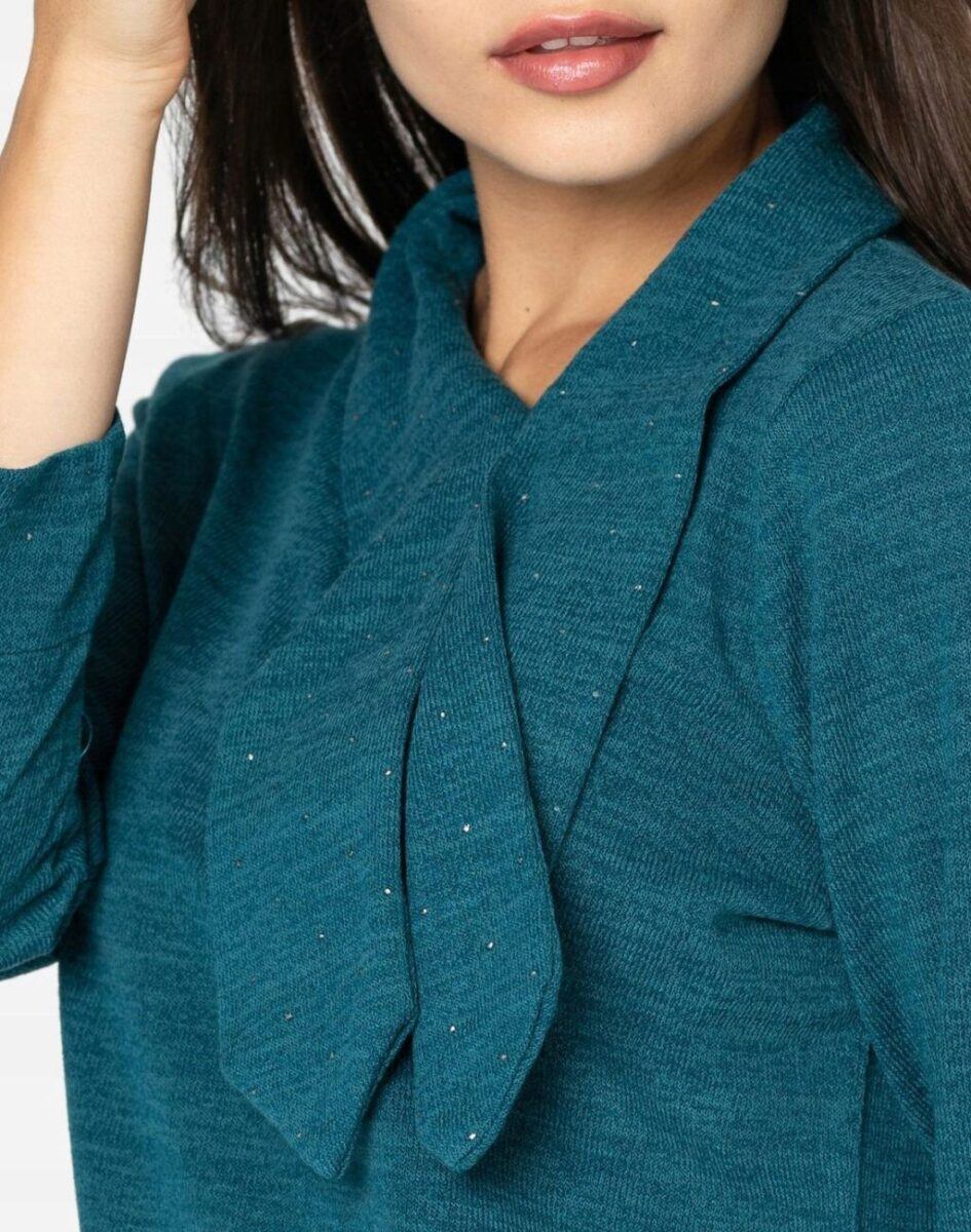 To propozycja do casualowego looku w którym możemy pozwolić sobie na odrobinę luzu, a także do eleganckiej stylizacji w której musimy postawić na szyk i klasę. Luźny krój sweterka pozwala zamaskować brzuch i boczki a szerokie rękawy 3/4 zakończone mankietem to nie tylko prestiżowy wygląd ale duża swoboda podczas ruchu. Efektowny szalokołnierz z możliwością wiązania na różne sposoby sprawia, że kreacja za każdym razem może wyglądać zupełnie inaczej. Elegancki, wygodny i bardzo zmysłowy, stworzony z myślą o Paniach, które od odzieży oczekują subtelnego stylu i niepowtarzalnego design’u. Ten wyjątkowy element kobiecej garderoby może być jednocześnie idealnym tłem dla każdej biżuterii jak i najbardziej charakterystyczną częścią ubioru i idealnie pasuje niemal do wszystkiego – a my, kobiety, uwielbiamy takie rozwiązania.
