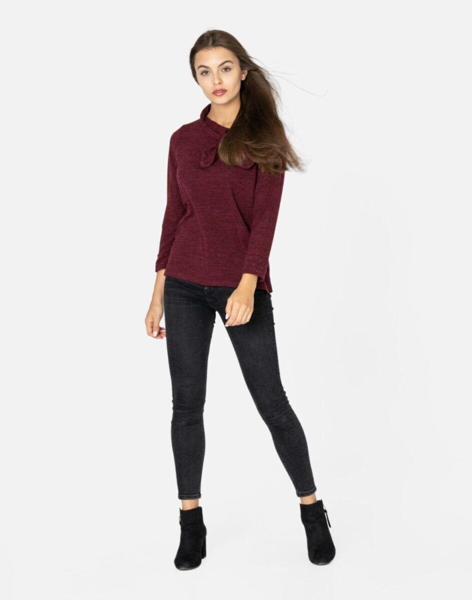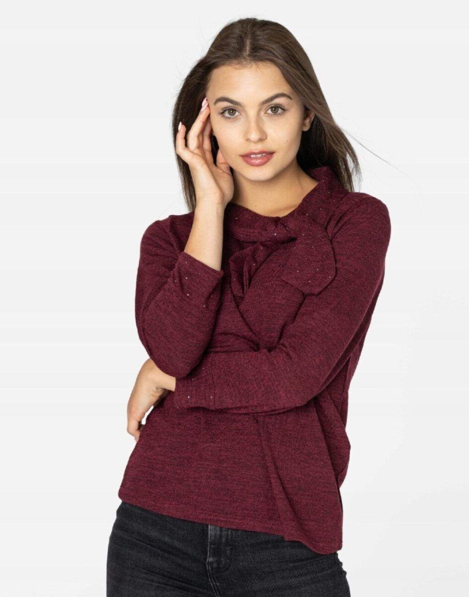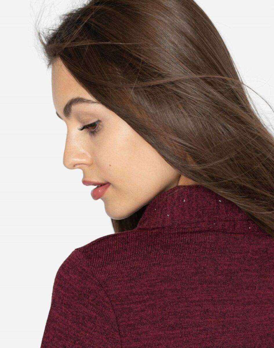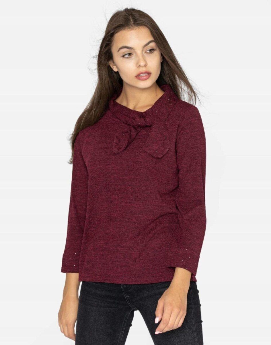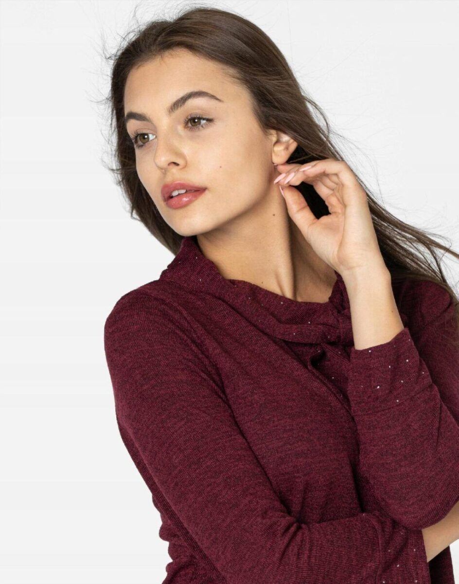 To propozycja do casualowego looku w którym możemy pozwolić sobie na odrobinę luzu, a także do eleganckiej stylizacji w której musimy postawić na szyk i klasę. Luźny krój sweterka pozwala zamaskować brzuch i boczki a szerokie rękawy 3/4 zakończone mankietem to nie tylko prestiżowy wygląd ale duża swoboda podczas ruchu. Efektowny szalokołnierz z możliwością wiązania na różne sposoby sprawia, że kreacja za każdym razem może wyglądać zupełnie inaczej. Elegancki, wygodny i bardzo zmysłowy, stworzony z myślą o Paniach, które od odzieży oczekują subtelnego stylu i niepowtarzalnego design’u. Ten wyjątkowy element kobiecej garderoby może być jednocześnie idealnym tłem dla każdej biżuterii jak i najbardziej charakterystyczną częścią ubioru i idealnie pasuje niemal do wszystkiego – a my, kobiety, uwielbiamy takie rozwiązania.