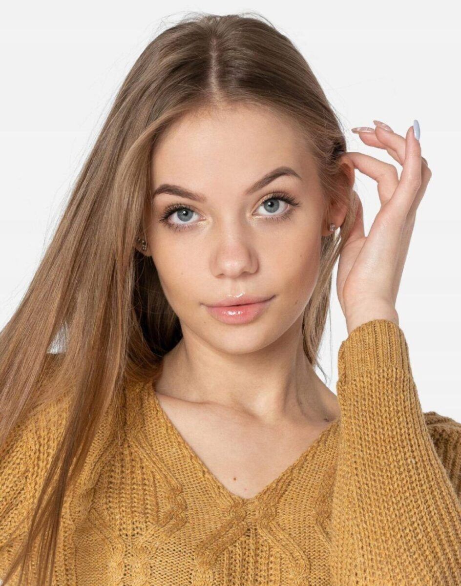- Długość: do bioder, asymetryczna – przodem krótsza tyłem dłuższa