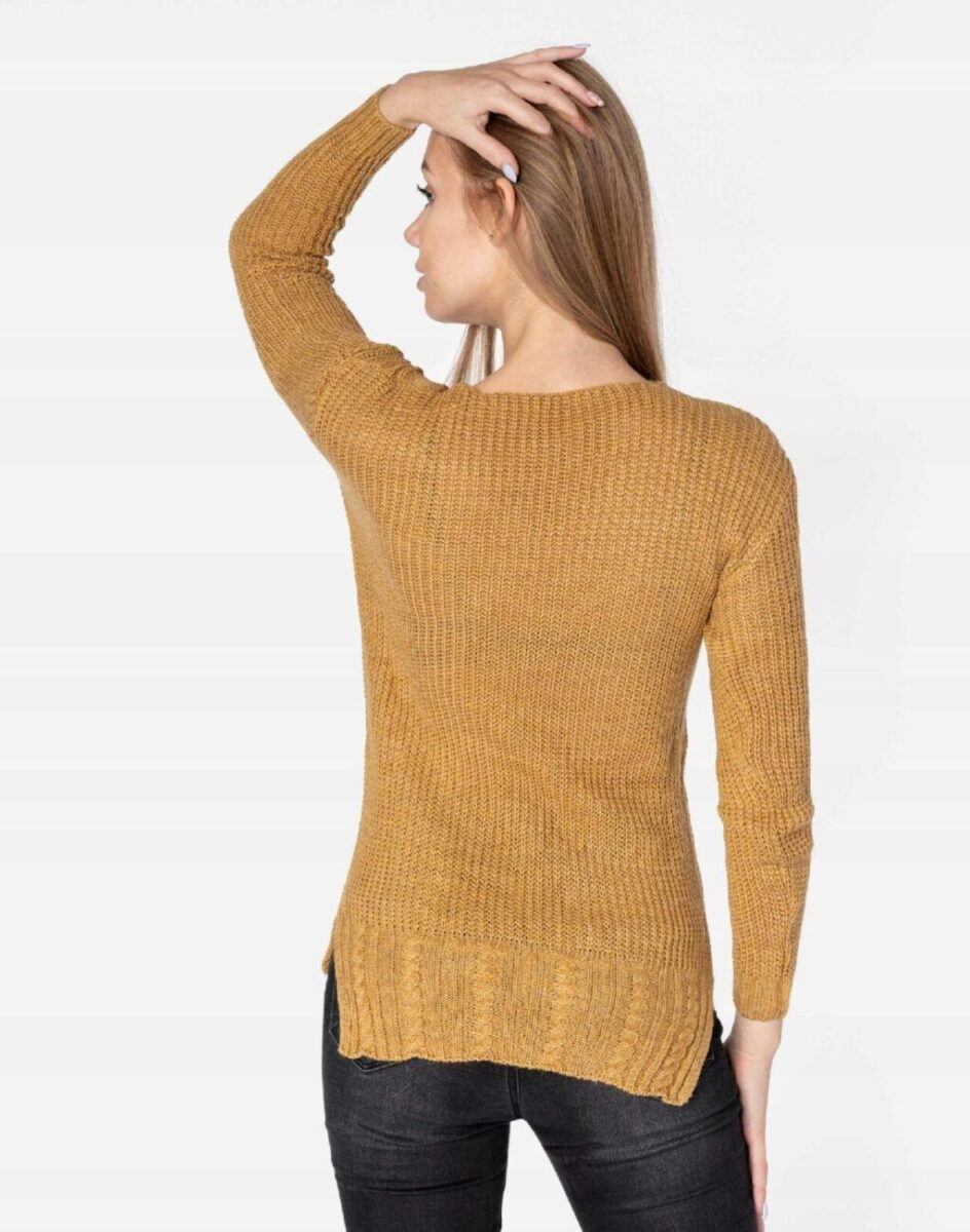 Elegancki asymetryczny sweterek damski z najnowszej kolekcji firmy BENTER wyprodukowany z przyjemnej w dotyku dzianiny akrylowej średniej grubości cechującej się wysoką trwałością i komfortem noszenia. Nosząc go, na pewno się nie zgrzejemy ani nie spocimy, gdyż idealnie odprowadza wilgoć, zapewniając użytkownikom wysokie poczucie komfortu. Przedłużony tył sweterka z powodzeniem zakrywa części ciała wrażliwe na chłód jak plecy na wysokości nerek i pośladki. Kobiecy model, który będzie wyglądał zjawiskowo, jako element każdej stylizacji.. To propozycja zarówno do casualowego looku w którym możemy pozwolić sobie na odrobinę luzu, jak również do eleganckiej stylizacji w której musimy postawić na szyk i klasę. Idealnie sprawdzi się w połączeniu z wysokimi spodniami, spódnicami, cygaretkami, szortami, bądź skórzanymi rurkami. Ten wyjątkowy element kobiecej garderoby może być jednocześnie idealnym tłem dla każdej biżuterii jak i najbardziej charakterystyczną częścią ubioru. Wygodny strój do codziennego użytku jak i na specjalne okazje. Nikt nie przejdzie obok niej obojętnie. Jest to również ciekawy pomysł na prezent. Radość gwarantowana! Idealnie pasuje niemal do wszystkiego – a my, kobiety, uwielbiamy takie rozwiązania.