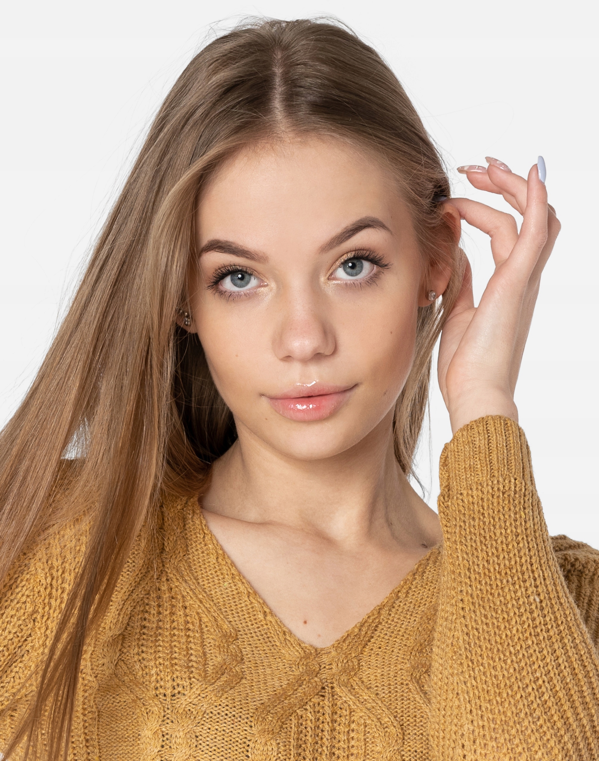 - Dekolt: typu V-neck w serek