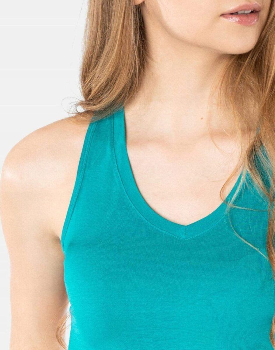 Lekka jak piórko o delikatnie taliowanym kroju, cienka i przewiewna, idealna na co dzień jako element casualowego stroju czyniąc go lekkim i dostosowanym do wysokich temperatur. Wykonana z wysokiej jakości dzianiny wiskozowej z domieszką elastanu, który cechuje przede wszystkim lekkość i zwiewność. Zastosowany materiał jest oddychający, odporny na promieniowanie UV, elastyczny, rozciągliwy w czterech kierunkach, idealnie dopasowuje się i jest bardzo komfortowy. Przyjemny w dotyku i odporny na zmechacenie a dzięki silikonowaniu włókien w procesie produkcji idealnie gładki. Zdobył aprobatę tysięcy zadowolonych klientek i uznawany jest za jeden z najlepszych do produkcji sportowej odzieży damskiej.