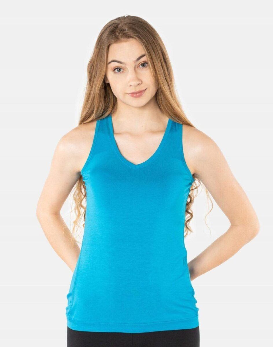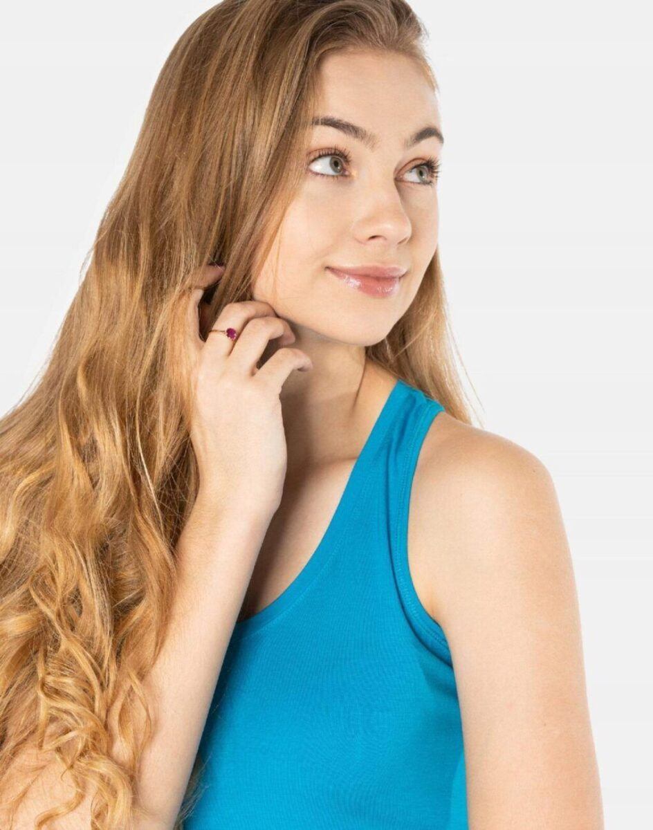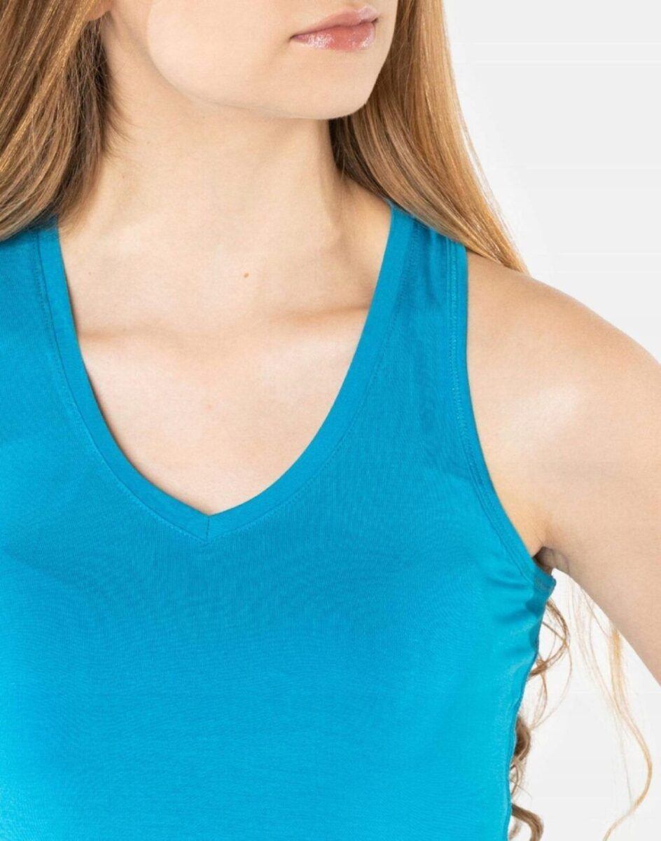Lekka jak piórko o delikatnie taliowanym kroju, cienka i przewiewna, idealna na co dzień jako element casualowego stroju czyniąc go lekkim i dostosowanym do wysokich temperatur. Wykonana z wysokiej jakości dzianiny wiskozowej z domieszką elastanu, który cechuje przede wszystkim lekkość i zwiewność. Zastosowany materiał jest oddychający, odporny na promieniowanie UV, elastyczny, rozciągliwy w czterech kierunkach, idealnie dopasowuje się i jest bardzo komfortowy. Przyjemny w dotyku i odporny na zmechacenie a dzięki silikonowaniu włókien w procesie produkcji idealnie gładki. Zdobył aprobatę tysięcy zadowolonych klientek i uznawany jest za jeden z najlepszych do produkcji sportowej odzieży damskiej.