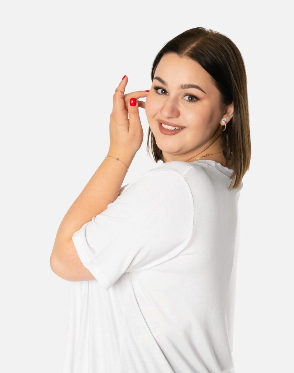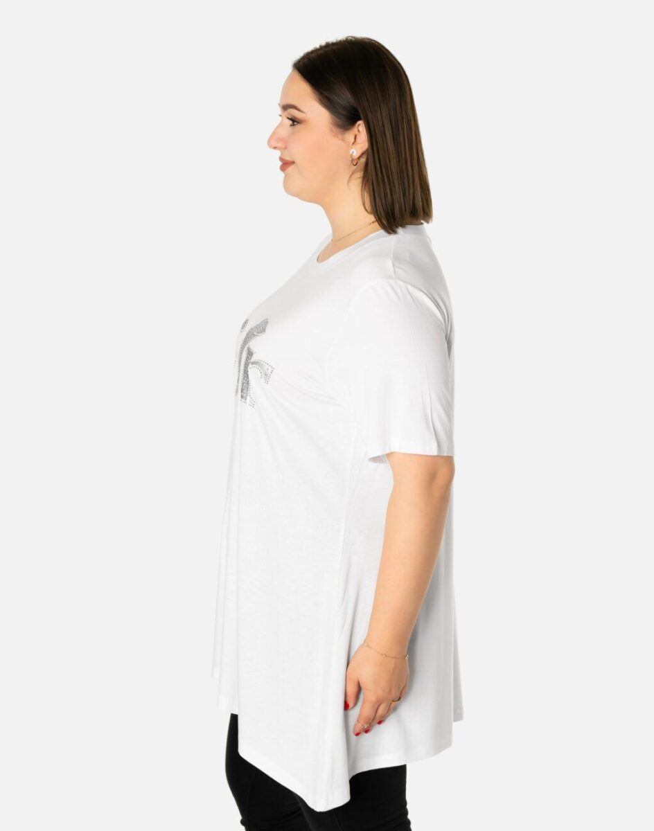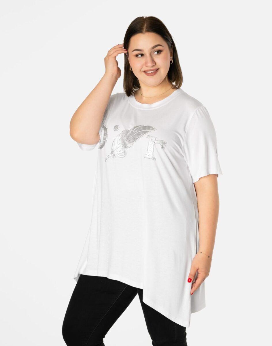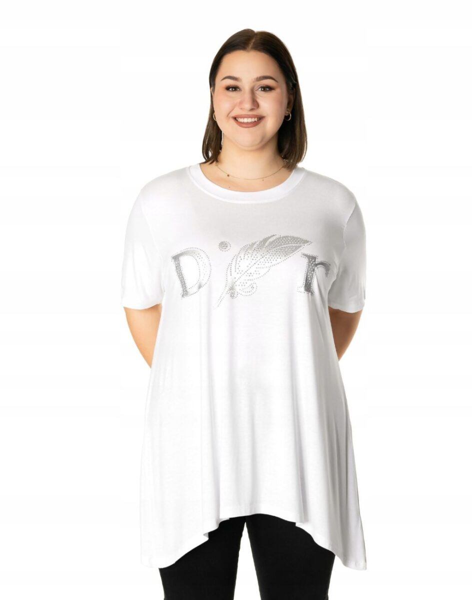 … luźna, wygodna z krótkim rękawem i efektownym nadrukiem z ozdobnymi cyrkoniami to idealne połączenie kobiecości i komfortu, które doskonale sprawdzi się podczas codziennego użytkowania.