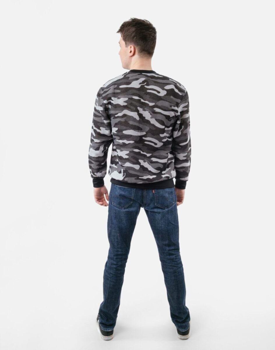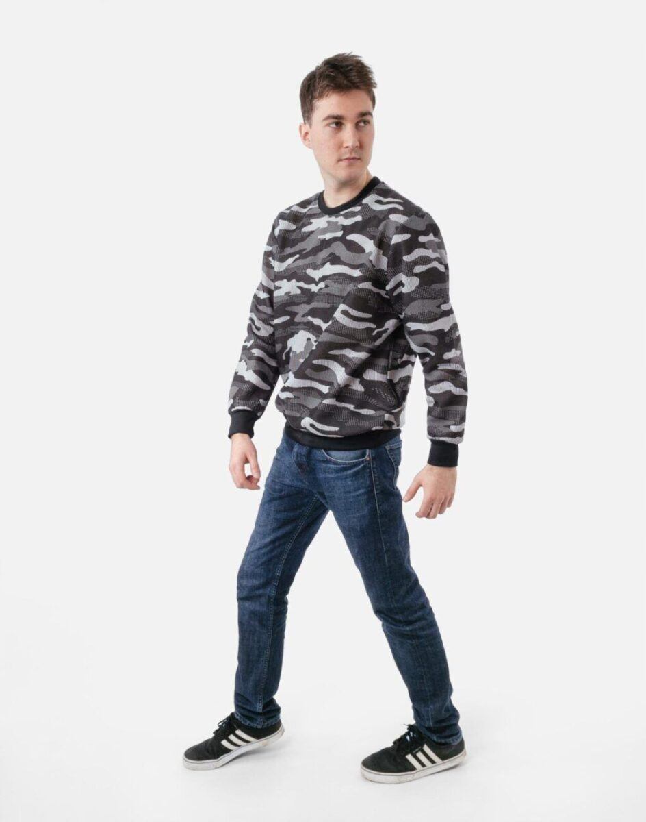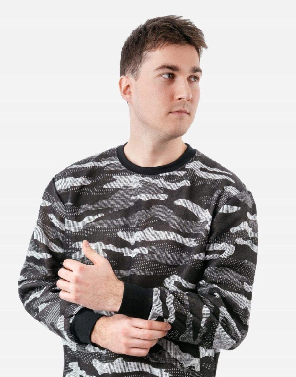 Bluza uszyta jest z wysokiej jakości naturalnej dzianiny bawełnianej średniej grubości z dodatkiem poliestru. Naturalna bawełna gwarantuje wspaniałą izolację cieplną, wchłanianie potu i oddychanie skóry a dodatek poliestru to gwarancja pełnej swobody ruchów oraz stabilności rozmiarów po wielokrotnym praniu. Dół bluzy oraz rękawy wykończone szerokim elastycznym ściągaczem. Wewnętrzna strona posiada wykończenie typu „MESCH” (fabrycznie wykończona jest miłym w dotyku i przyjemnym dla ciała meszkiem tzw. „szczotkowana”) zapewniające bardzo przyjemny kontakt ze skórą oraz komfort cieplny, natomiast zewnętrzna powierzchnia bluzy jest gładka i ozdobiona w deseń inspirowany wojskowym wzorem moro Camo który znają wszyscy na świecie. Ten charakterystyczny wzór jest uwielbiany przez fanów i fanki militarnego stylu ubierania. Możesz w niej chodzić na co dzień, idealnie nadaje się również do uprawiania różnych dyscyplin sportu i rekreacji. Ergonomiczny krój bluzy nie ogranicza swobody ruchów a właściwe dla odzieży sportowej proporcje surowcowe wpływają pozytywnie na komfort użytkowania. Sportowa bluza bawełniana przyda Ci się przez cały rok: w zimie możesz nosić ją pod kurtką, a wiosną, jesienią i latem przyda się jako samodzielne okrycie w chłodniejsze lub wietrzne dni.