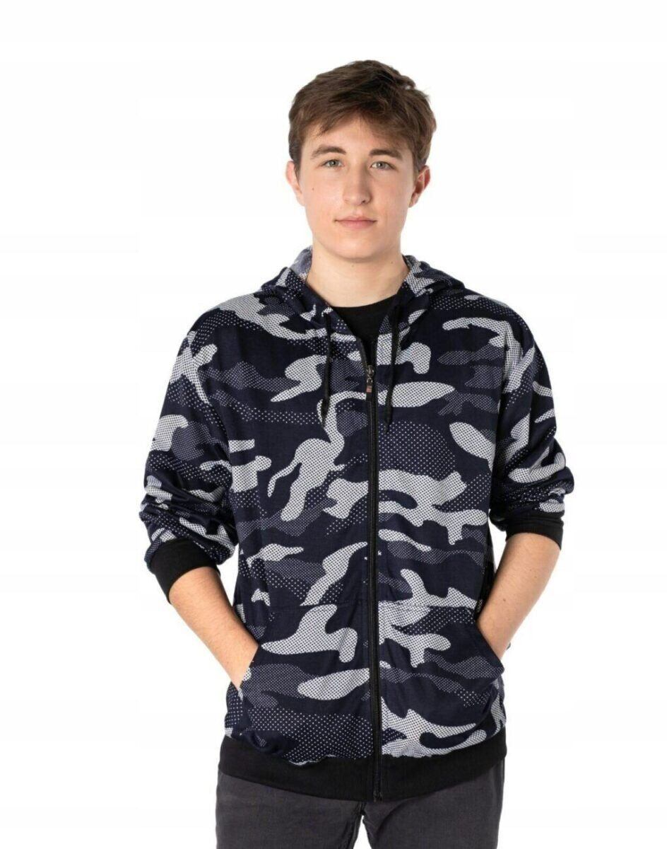 Sportowa bluza męska moro zasuwana na zamek z kapturem