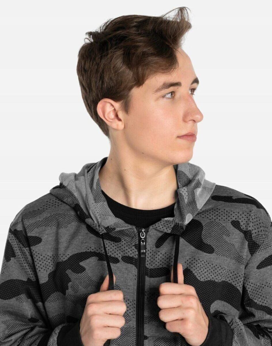 Sportowa bluza męska moro zasuwana na zamek z kapturem