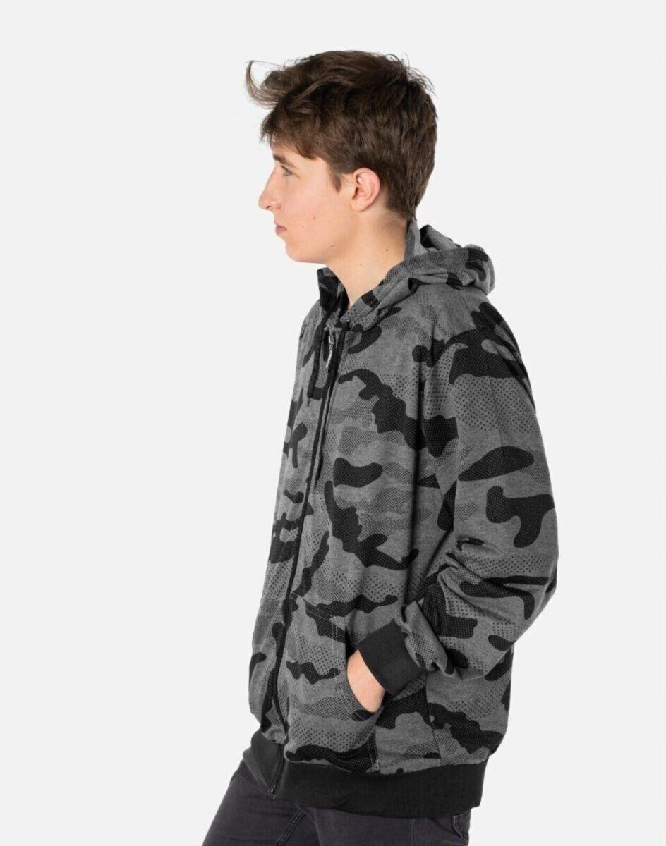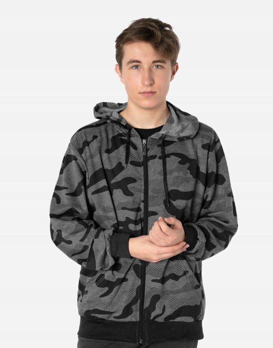 Sportowa bluza męska moro zasuwana na zamek z kapturem