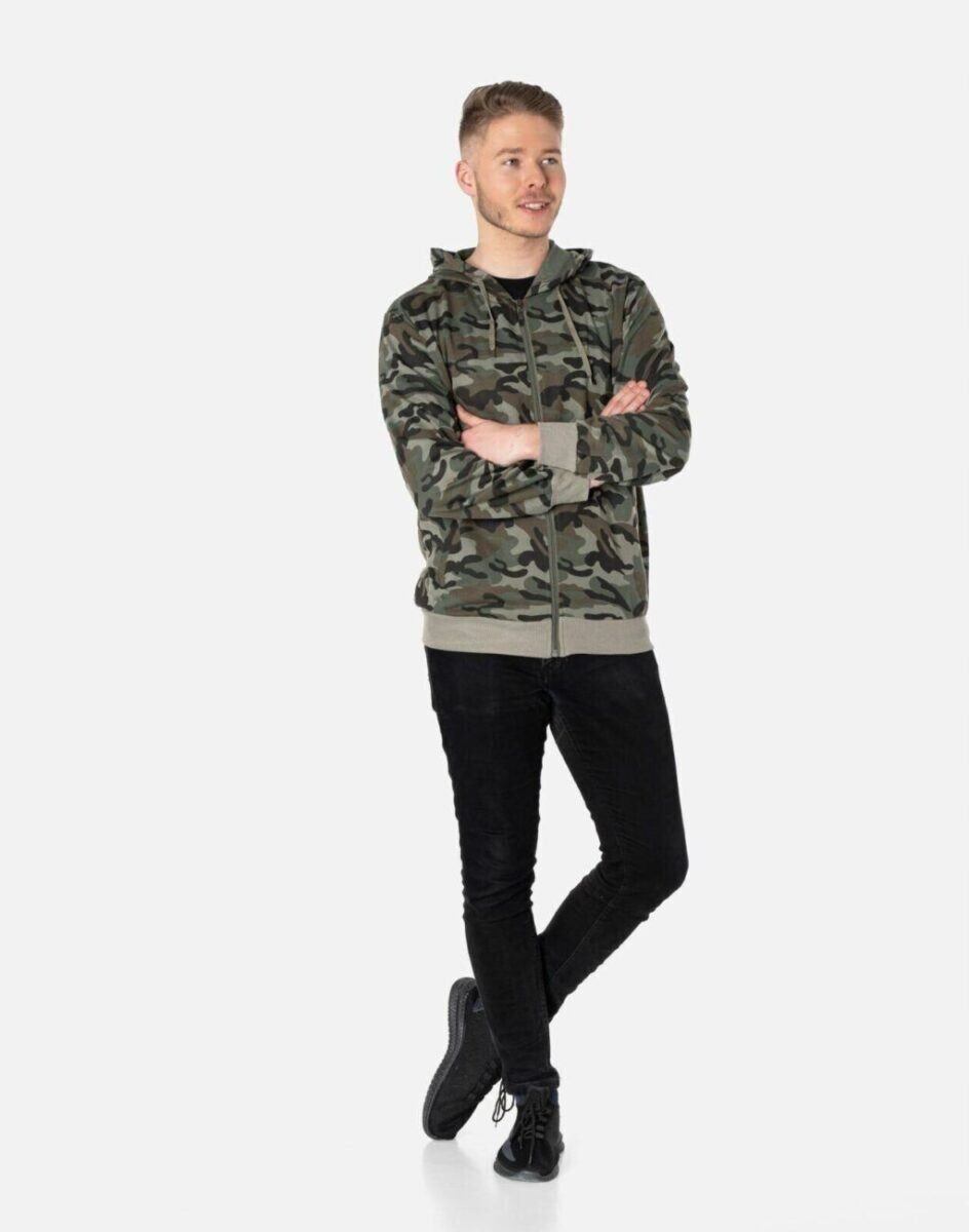 Sportowa bluza męska moro zasuwana na zamek z kapturem