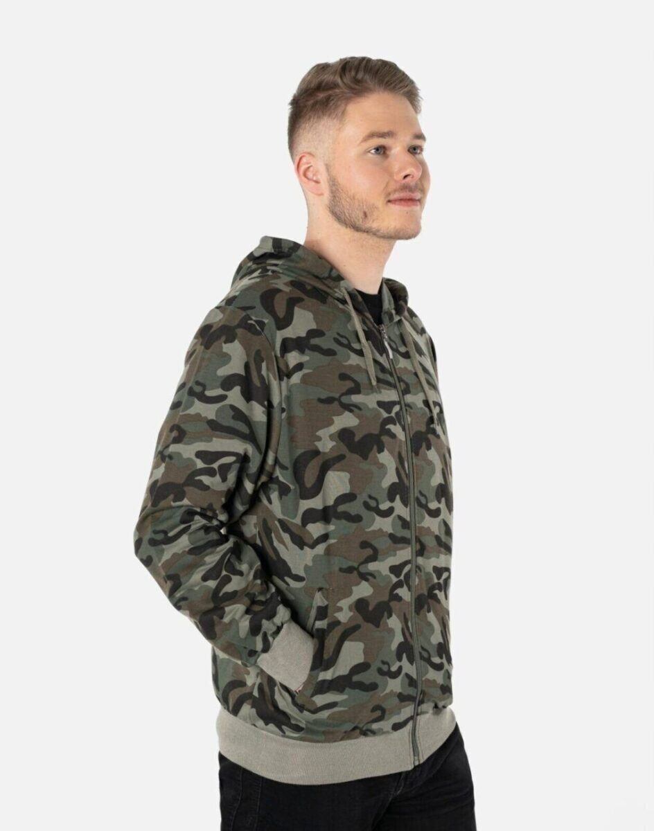 Sportowa bluza męska moro zasuwana na zamek z kapturem