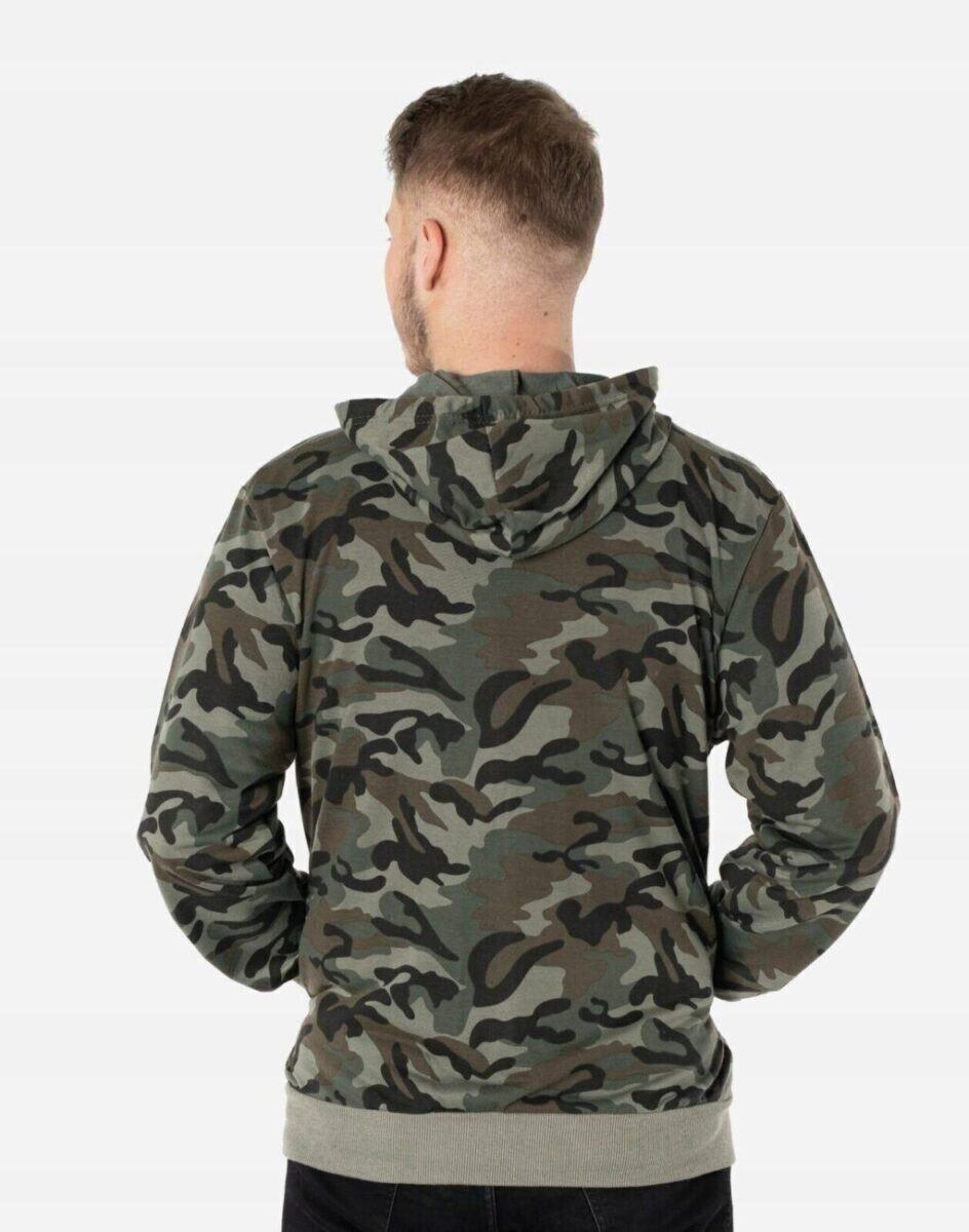 Sportowa bluza męska moro zasuwana na zamek z kapturem
