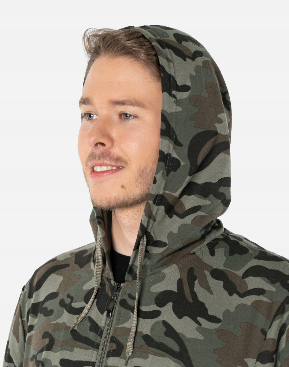 Sportowa bluza męska moro zasuwana na zamek z kapturem
