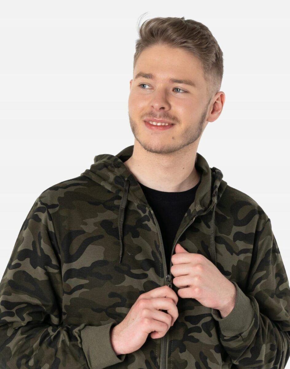Sportowa bluza męska moro zasuwana na zamek z kapturem