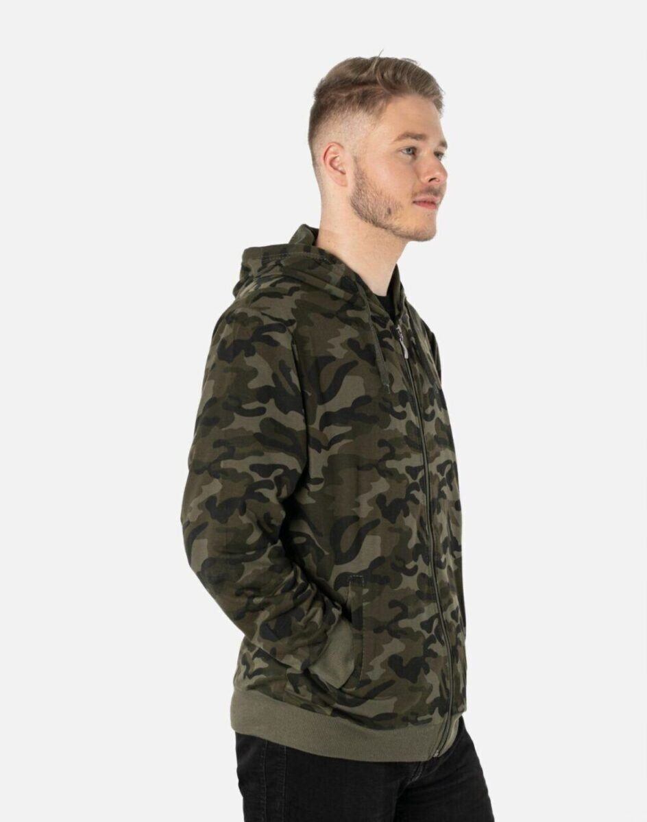 Sportowa bluza męska moro zasuwana na zamek z kapturem