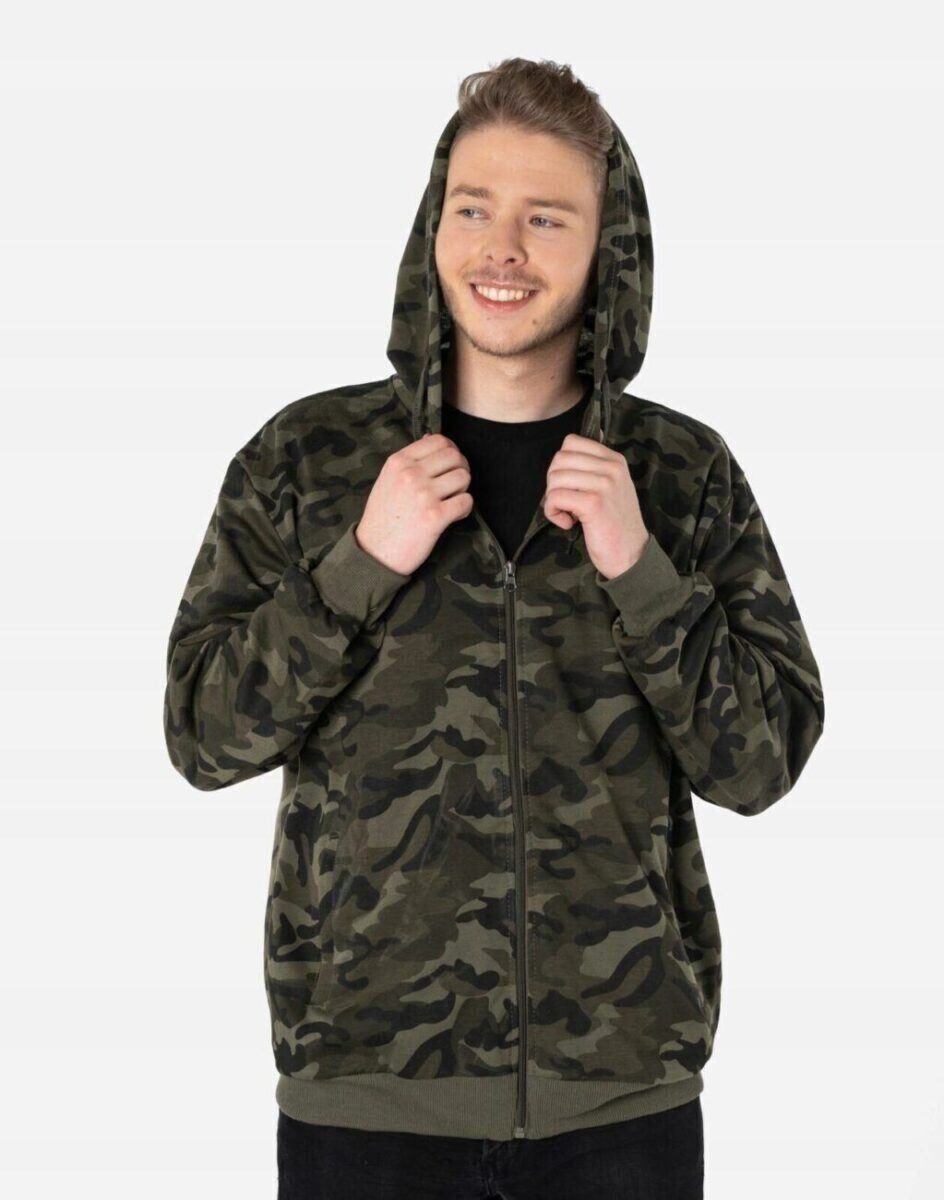 Sportowa bluza męska moro zasuwana na zamek z kapturem