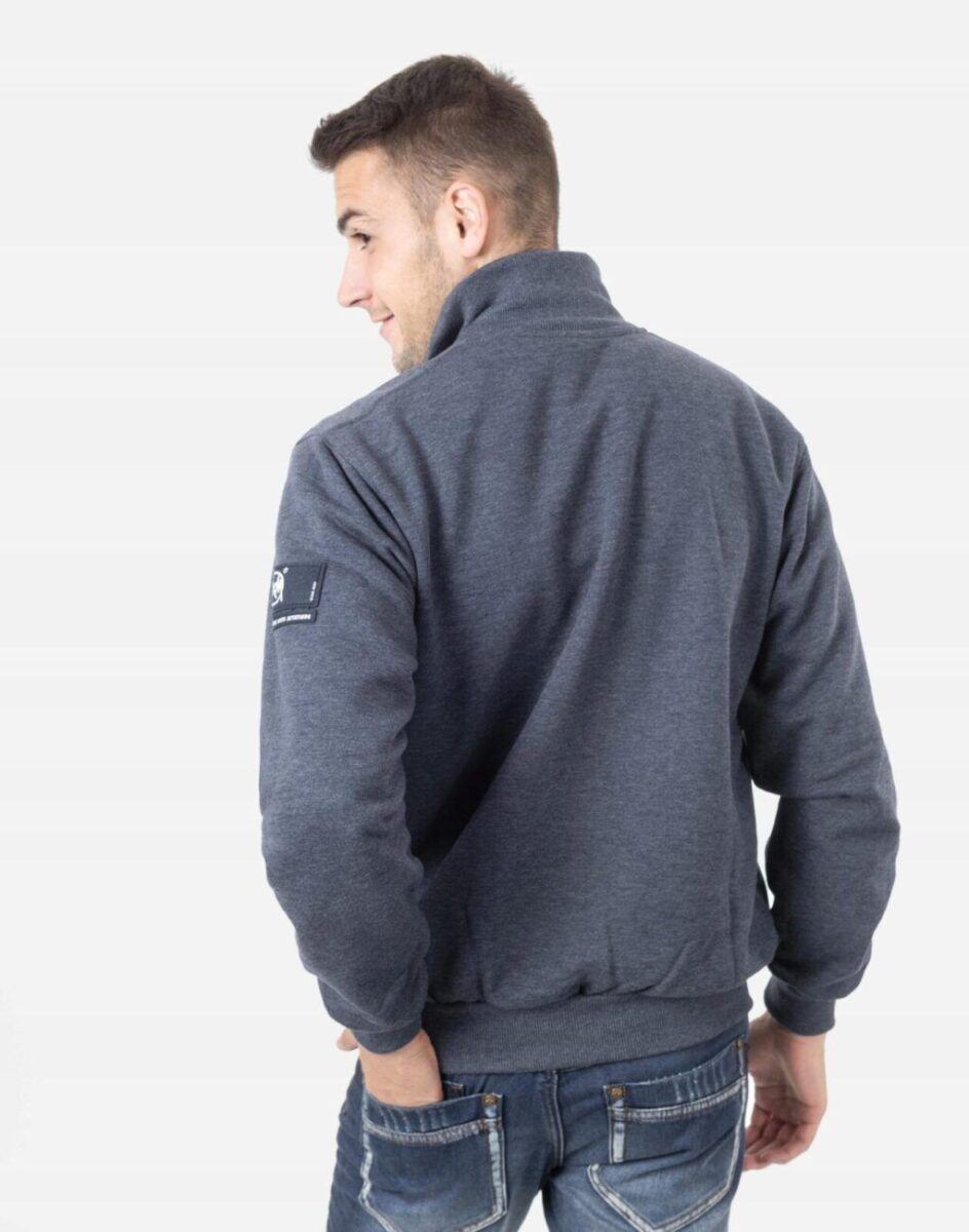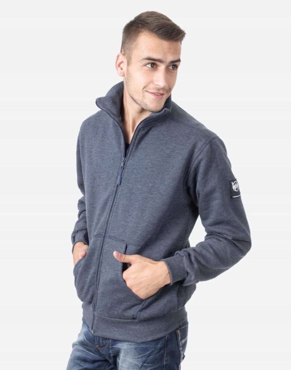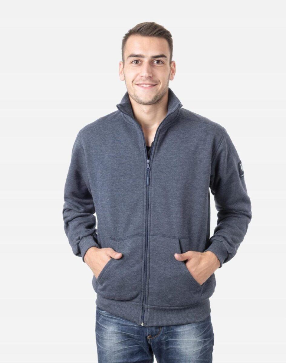 Wyprodukowana w Polsce z najlepszej jakości dzianiny 100% bawełnianej o dużej gęstości ( 350 g/m2 ). Naturalna bawełna gwarantuje wspaniałą izolację cieplną, wchłanianie potu i oddychanie skóry a sam materiał odznacza się dużą miękkością. Znakomicie sprawdzi się w chłodniejsze dni jest ciepła, wygodna i bardzo modna. Bluza zasuwana jest w całości na zamek błyskawiczny i posiada dwie kieszenie przednie na dłonie. Wysoki kołnierz/stójka skutecznie chroni podbródek i szyję a często zastępuje nawet szalik co jest bardzo wygodne. Dół bluzy oraz rękawy wykończone szerokim elastycznym ściągaczem który zapobiega utracie ciepła. Na lewym ramieniu efektowne firmowe logo. Wewnętrzna strona wykończona jest miłym w dotyku i przyjemnym dla ciała meszkiem tzw. „szczotkowana”. Zewnętrzna powierzchnia bluzy gładka.