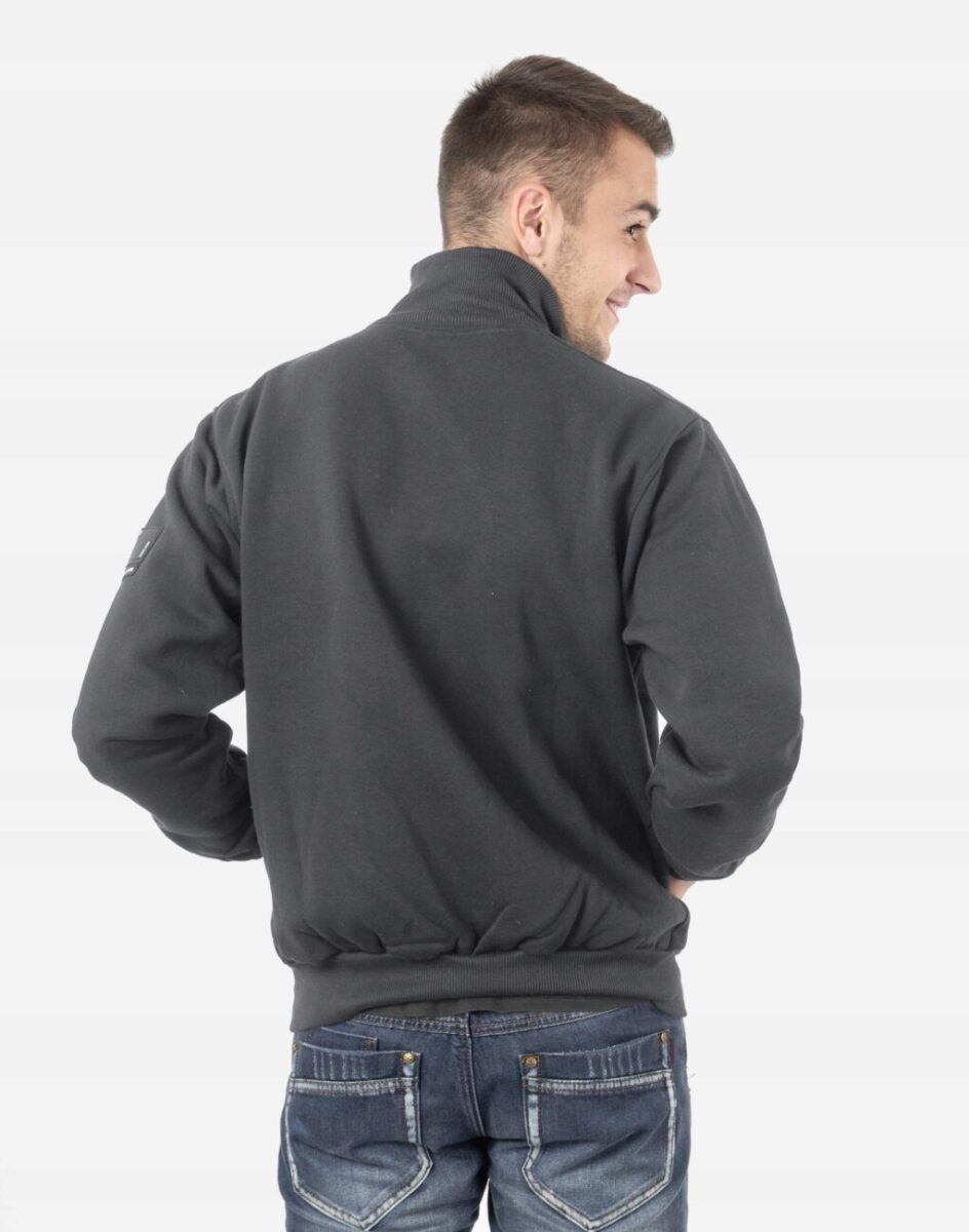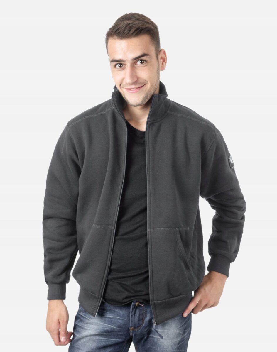 Wyprodukowana w Polsce z najlepszej jakości dzianiny 100% bawełnianej o dużej gęstości ( 350 g/m2 ). Naturalna bawełna gwarantuje wspaniałą izolację cieplną, wchłanianie potu i oddychanie skóry a sam materiał odznacza się dużą miękkością. Znakomicie sprawdzi się w chłodniejsze dni jest ciepła, wygodna i bardzo modna. Bluza zasuwana jest w całości na zamek błyskawiczny i posiada dwie kieszenie przednie na dłonie. Wysoki kołnierz/stójka skutecznie chroni podbródek i szyję a często zastępuje nawet szalik co jest bardzo wygodne. Dół bluzy oraz rękawy wykończone szerokim elastycznym ściągaczem który zapobiega utracie ciepła. Na lewym ramieniu efektowne firmowe logo. Wewnętrzna strona wykończona jest miłym w dotyku i przyjemnym dla ciała meszkiem tzw. „szczotkowana”. Zewnętrzna powierzchnia bluzy gładka.