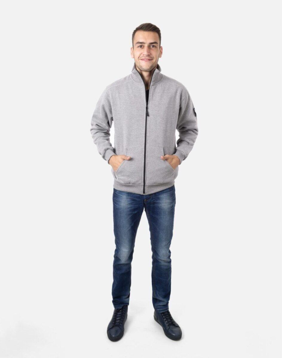 Wyprodukowana w Polsce z najlepszej jakości dzianiny 100% bawełnianej o dużej gęstości ( 350 g/m2 ). Naturalna bawełna gwarantuje wspaniałą izolację cieplną, wchłanianie potu i oddychanie skóry a sam materiał odznacza się dużą miękkością. Znakomicie sprawdzi się w chłodniejsze dni jest ciepła, wygodna i bardzo modna. Bluza zasuwana jest w całości na zamek błyskawiczny i posiada dwie kieszenie przednie na dłonie. Wysoki kołnierz/stójka skutecznie chroni podbródek i szyję a często zastępuje nawet szalik co jest bardzo wygodne. Dół bluzy oraz rękawy wykończone szerokim elastycznym ściągaczem który zapobiega utracie ciepła. Na lewym ramieniu efektowne firmowe logo. Wewnętrzna strona wykończona jest miłym w dotyku i przyjemnym dla ciała meszkiem tzw. „szczotkowana”. Zewnętrzna powierzchnia bluzy gładka.