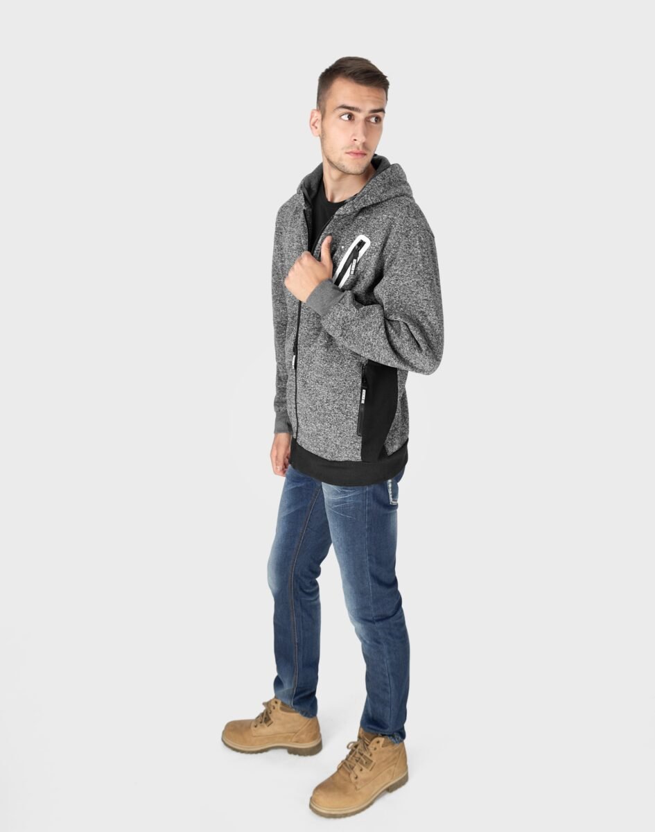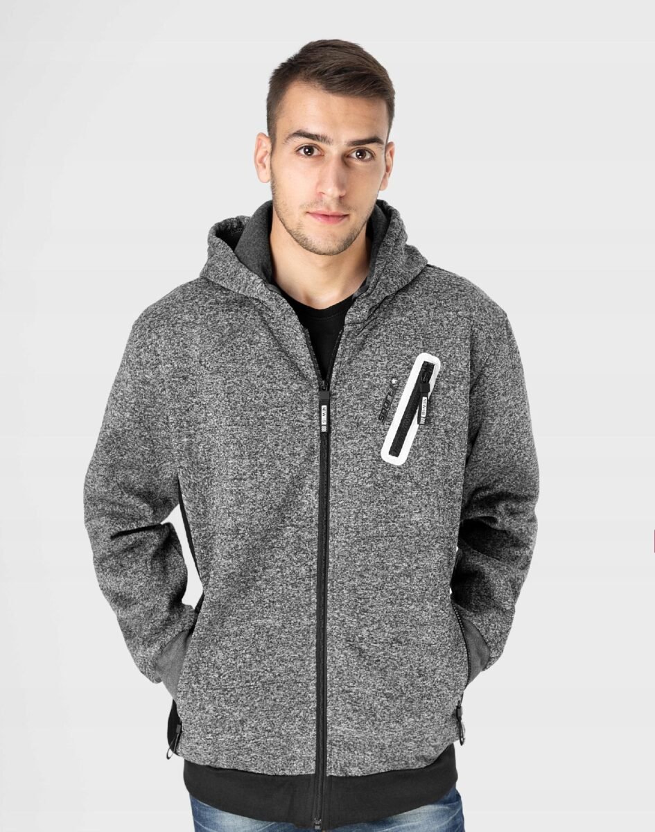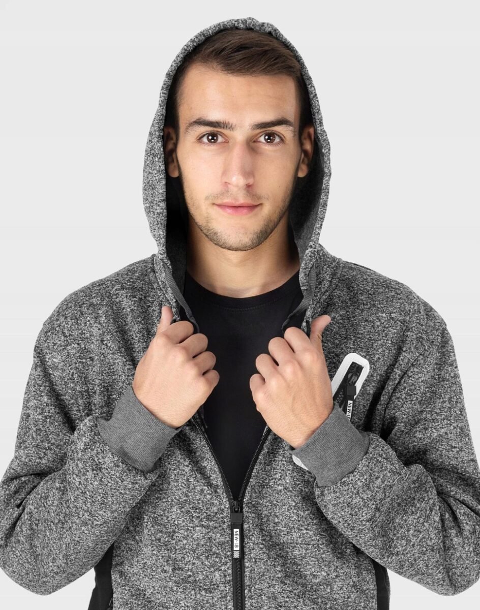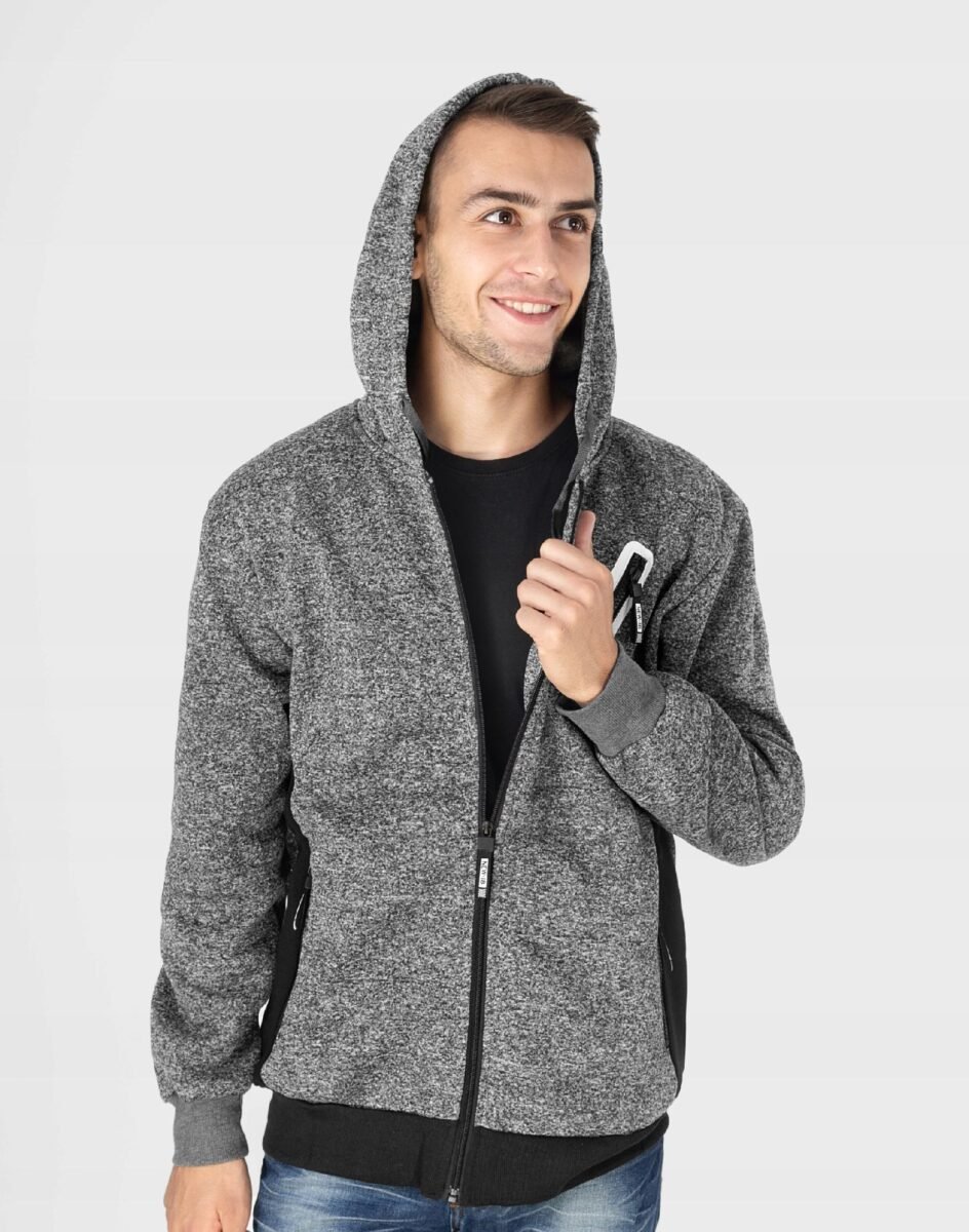 Wykonana z naturalnej dzianiny bawełnianej o dużej gęstości ( 320 g/m2 ) z dodatkiem poliestru, znakomicie sprawdzi się w chłodniejsze dni, jest ciepła, wygodna i bardzo modna, a praktyczny obszerny kaptur ochroni Twoją głowę przed zimnem i wiatrem. Bluza zasuwana jest w całości na zamek błyskawiczny, posiada dwie kieszenie przednie na dłonie zasuwane na zamki błyskawiczne i zintegrowany kaptur z możliwością regulacji jego wielkości i dopasowania. Dół bluzy oraz rękawy wykończone szerokim elastycznym ściągaczem który zapobiega utracie ciepła. Na piersi ozdobny zamek w postaci atrapy kieszeni. Jest ciepła, wygodna i praktyczna, a jej wewnętrzna strona wykończona miłym w dotyku i przyjemnym dla ciała meszkiem tzw. „szczotkowana”. Zewnętrzna powierzchnia bluzy gładka. Możesz w niej chodzić na co dzień. Idealnie nadaje się również do uprawiania różnych dyscyplin sportu i rekreacji. Niepodważalną zaletą bluzy jest możliwość noszenia jej w rozmaitych warunkach pogodowych. Zapewniała ciepło podczas zimnej i wietrznej pogody a wraz ze wzrostem temperatury wystarczy rozpiąć zamek by poczuć się w niej komfortowo.