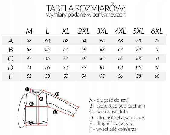 - Rękaw: długi zakończony ściągaczem