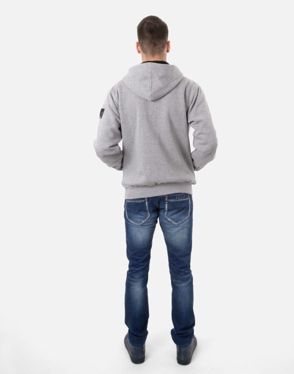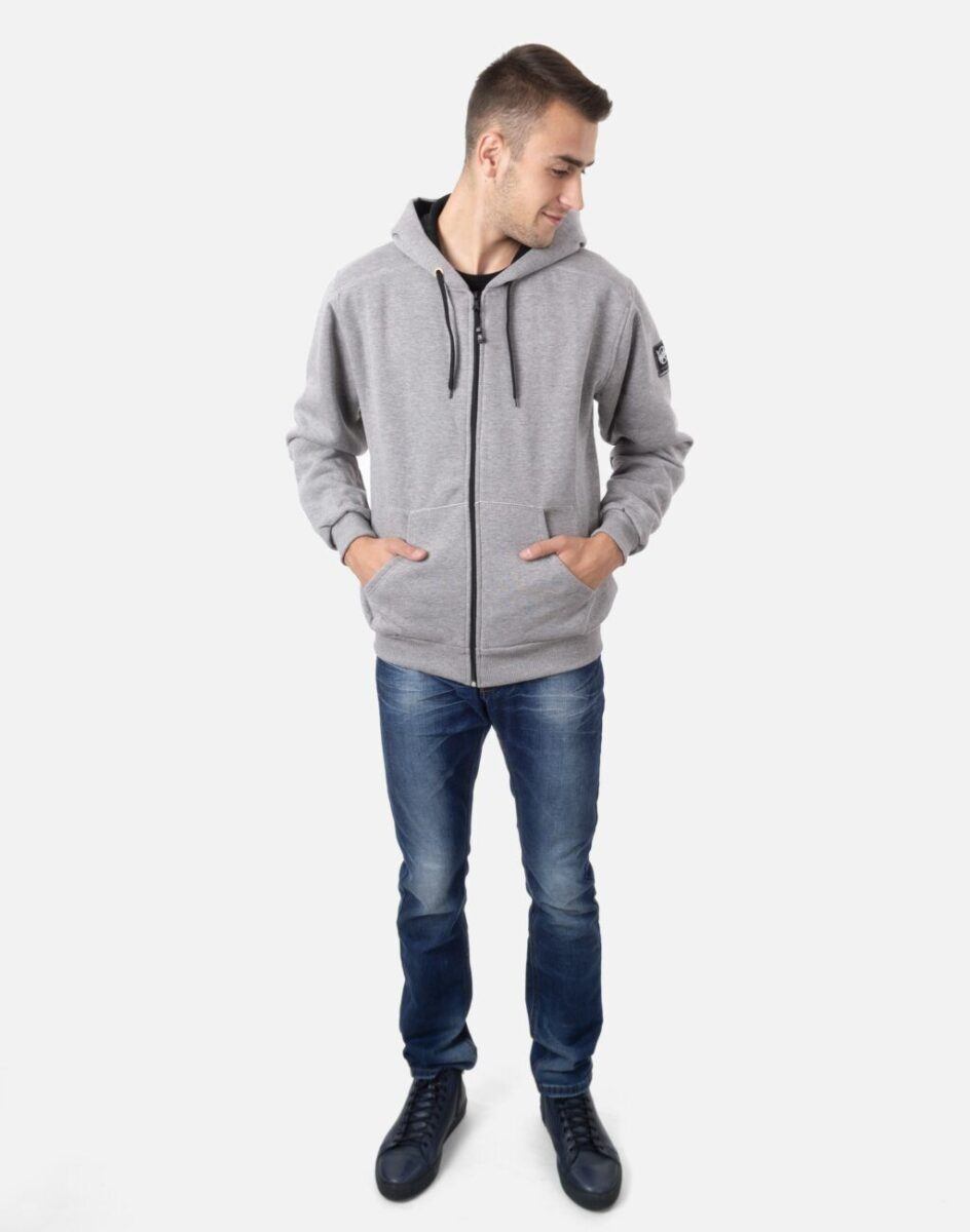 Wykonana z naturalnej dzianiny bawełnianej o dużej gęstości ( 350 g/m2 ) z niewielkim dodatkiem elastanu. Naturalna bawełna gwarantuje wspaniałą izolację cieplną, wchłanianie potu i oddychanie skóry a sam materiał odznacza się dużą miękkością. Dodatek elastanu to gwarancja pełnej swobody ruchów oraz stabilności rozmiarów po wielokrotnym praniu. Znakomicie sprawdzi się w chłodniejsze dni jest ciepła, wygodna i bardzo modna a praktyczny obszerny kaptur ochroni Twoją głowę przed zimnem i wiatrem. Bluza zasuwana jest w całości na zamek błyskawiczny, posiada dwie kieszenie przednie na dłonie i zintegrowany kaptur z możliwością regulacji jego wielkości i dopasowania. Dół bluzy oraz rękawy wykończone szerokim elastycznym ściągaczem który zapobiega utracie ciepła. Na lewym ramieniu efektowne firmowe logo. Wewnętrzna strona wykończona jest miłym w dotyku i przyjemnym dla ciała meszkiem tzw. „szczotkowana”. Zewnętrzna powierzchnia bluzy gładka. Możesz w niej chodzić na co dzień, idealnie nadaje się również do uprawiania różnych dyscyplin sportu i rekreacji. Niepodważalną zaletą bluzy jest możliwość noszenia jej w rozmaitych warunkach pogodowych. Zapewniała ciepło podczas zimnej i wietrznej pogody a wraz ze wzrostem temperatury wystarczy rozpiąć zamek by poczuć się w niej komfortowo.