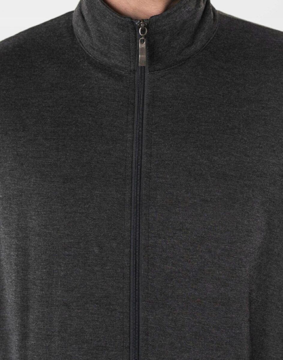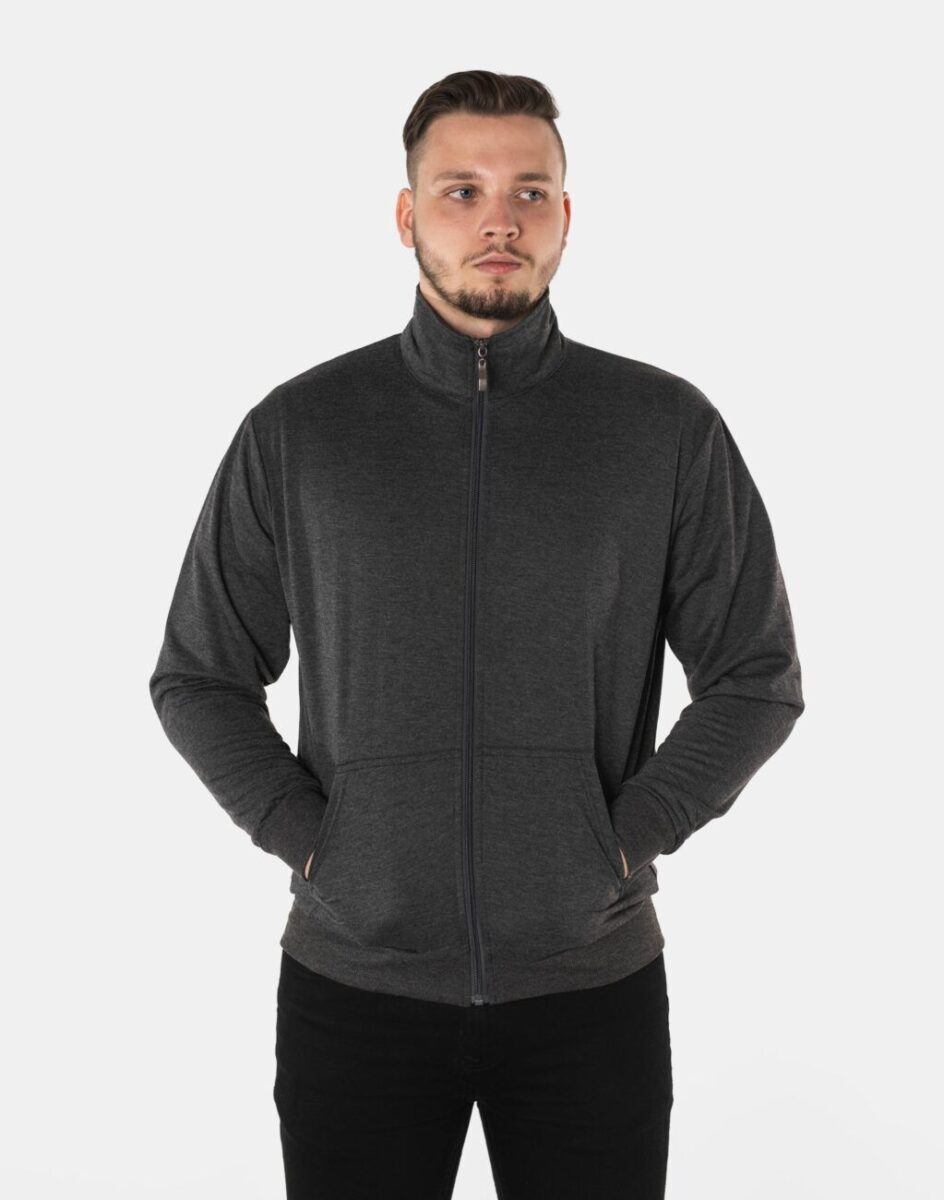 Klasyczna bluza sportowa męska wyprodukowana z dzianiny bawełnianej z dodatkiem poliestru zapewniającej maksymalną wygodę i komfort użytkowania. Naturalna bawełna gwarantuje izolację cieplną, wchłanianie potu i oddychanie skóry, a sam materiał odznacza się dużą miękkością. Dodatek poliestru to gwarancja pełnej swobody ruchów oraz stabilności rozmiarów i koloru po wielokrotnym praniu. Bluza zasuwana jest w całości, łącznie ze stójką na zamek błyskawiczny i posiada dwie kieszenie na dłonie. Dół bluzy oraz rękawy wykończone szerokim elastycznym ściągaczem.