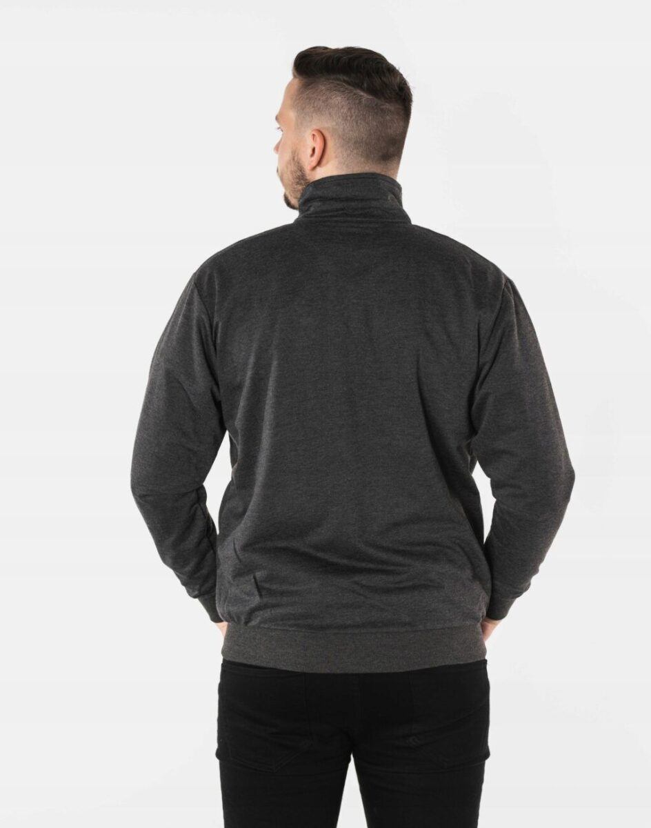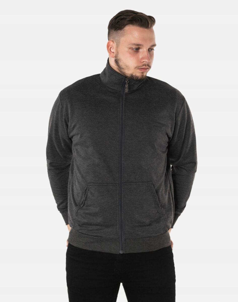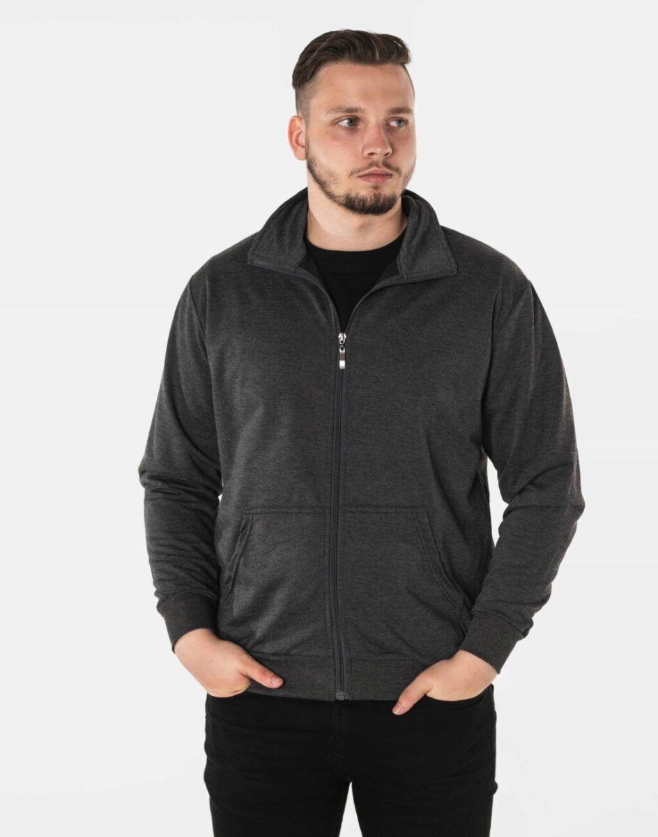 Klasyczna bluza sportowa męska wyprodukowana z dzianiny bawełnianej z dodatkiem poliestru zapewniającej maksymalną wygodę i komfort użytkowania. Naturalna bawełna gwarantuje izolację cieplną, wchłanianie potu i oddychanie skóry, a sam materiał odznacza się dużą miękkością. Dodatek poliestru to gwarancja pełnej swobody ruchów oraz stabilności rozmiarów i koloru po wielokrotnym praniu. Bluza zasuwana jest w całości, łącznie ze stójką na zamek błyskawiczny i posiada dwie kieszenie na dłonie. Dół bluzy oraz rękawy wykończone szerokim elastycznym ściągaczem.