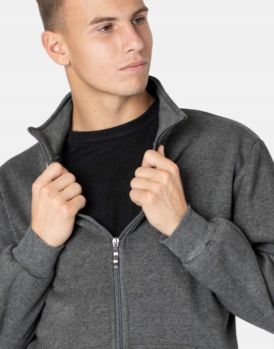 Klasyczna bluza sportowa męska wyprodukowana z dzianiny bawełnianej z dodatkiem poliestru zapewniającej maksymalną wygodę i komfort użytkowania. Naturalna bawełna gwarantuje wspaniałą izolację cieplną, wchłanianie potu i oddychanie skóry, a sam materiał odznacza się dużą miękkością. Dodatek poliestru to gwarancja pełnej swobody ruchów oraz stabilności rozmiarów i koloru po wielokrotnym praniu. Bluza zasuwana jest w całości na zamek błyskawiczny i posiada dwie kieszenie przednie na dłonie. Dół bluzy oraz rękawy wykończone szerokim elastycznym ściągaczem. Wewnętrzna strona posiada wykończenie typu „MESCH” (fabrycznie wykończona jest miłym w dotyku i przyjemnym dla ciała meszkiem tzw. „szczotkowana”) zapewniające bardzo przyjemny kontakt ze skórą oraz komfort cieplny. Zewnętrzna powierzchnia bluzy jest gładka. Ergonomiczny krój bluzy nie ogranicza swobody ruchów a właściwe dla odzieży sportowej proporcje surowcowe wpływają pozytywnie na komfort użytkowania. Możesz w niej chodzić na co dzień. Idealnie nadaje się również do uprawiania różnych dyscyplin sportu i rekreacji.