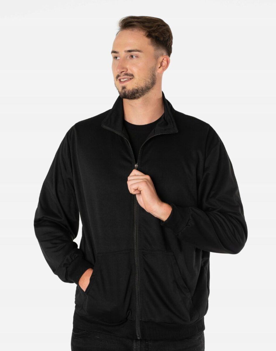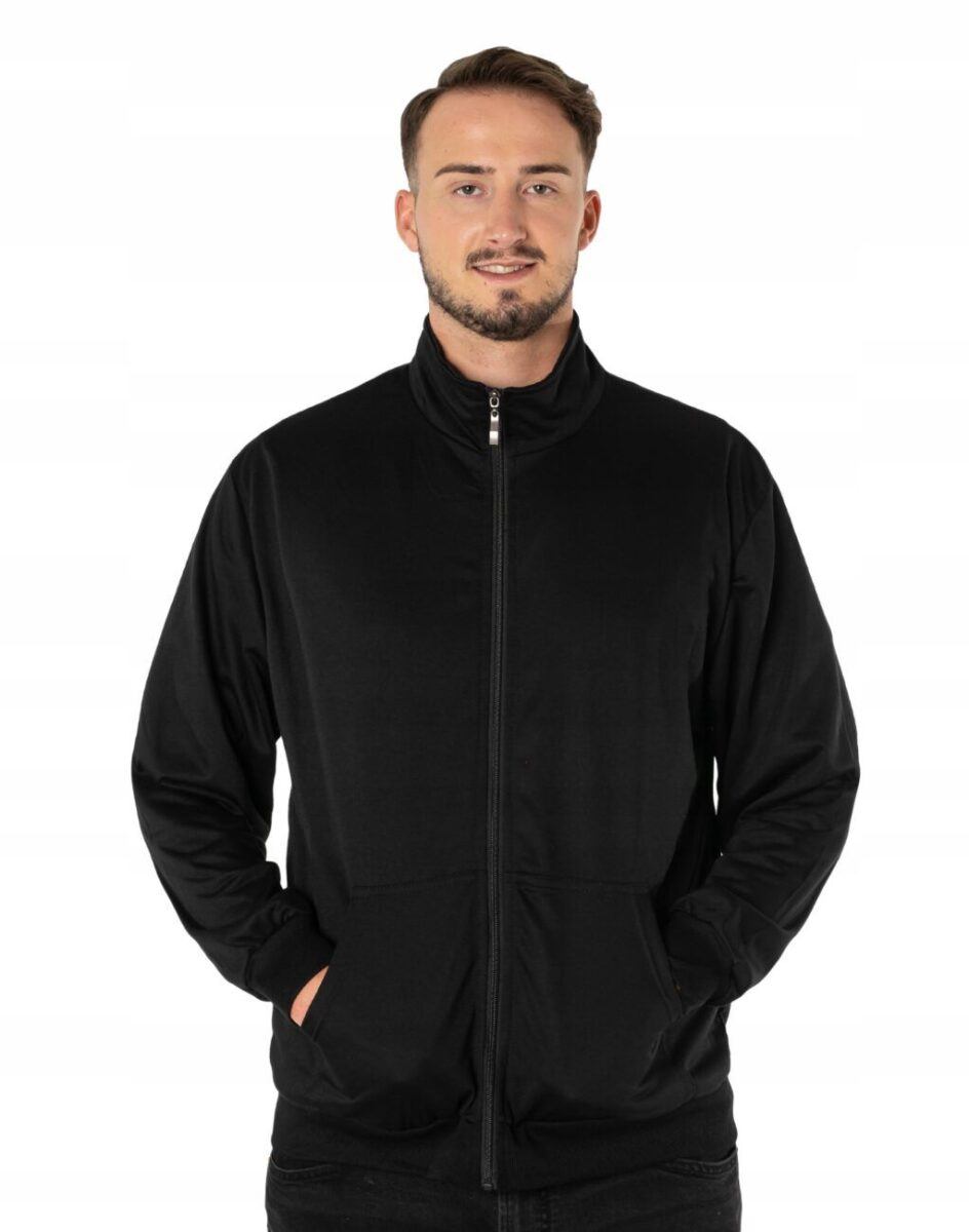 Klasyczna bluza sportowa męska wyprodukowana z dzianiny bawełnianej z dodatkiem poliestru zapewniającej maksymalną wygodę i komfort użytkowania. Naturalna bawełna gwarantuje izolację cieplną, wchłanianie potu i oddychanie skóry, a sam materiał odznacza się dużą miękkością. Dodatek poliestru to gwarancja pełnej swobody ruchów oraz stabilności rozmiarów i koloru po wielokrotnym praniu. Bluza zasuwana jest w całości, łącznie ze stójką na zamek błyskawiczny i posiada dwie kieszenie na dłonie. Dół bluzy oraz rękawy wykończone szerokim elastycznym ściągaczem. Ergonomiczny krój bluzy nie ogranicza swobody ruchów, a właściwe dla odzieży sportowej proporcje surowcowe wpływają pozytywnie na komfort użytkowania. Możesz w niej chodzić na co dzień, idealnie nadaje się również do uprawiania różnych dyscyplin sportu i rekreacji.