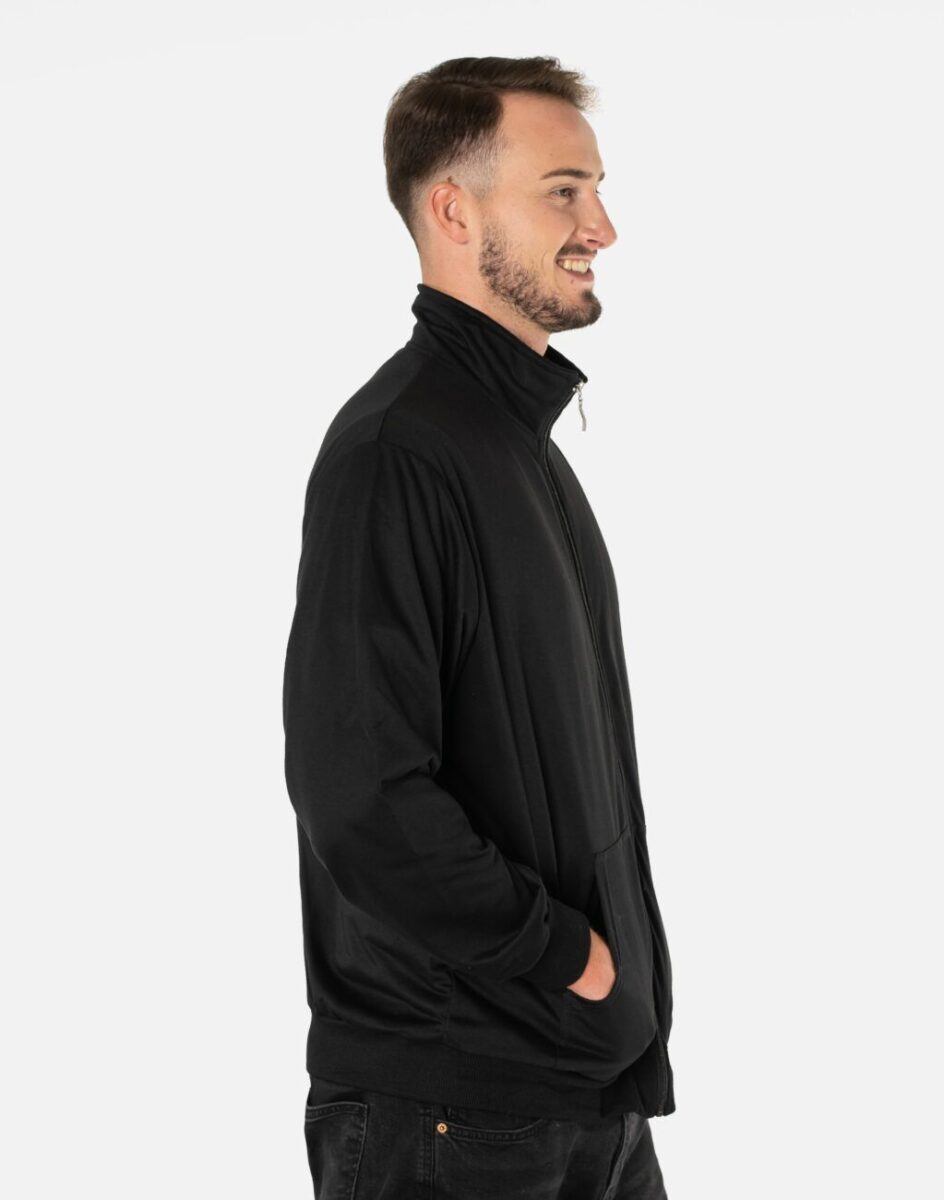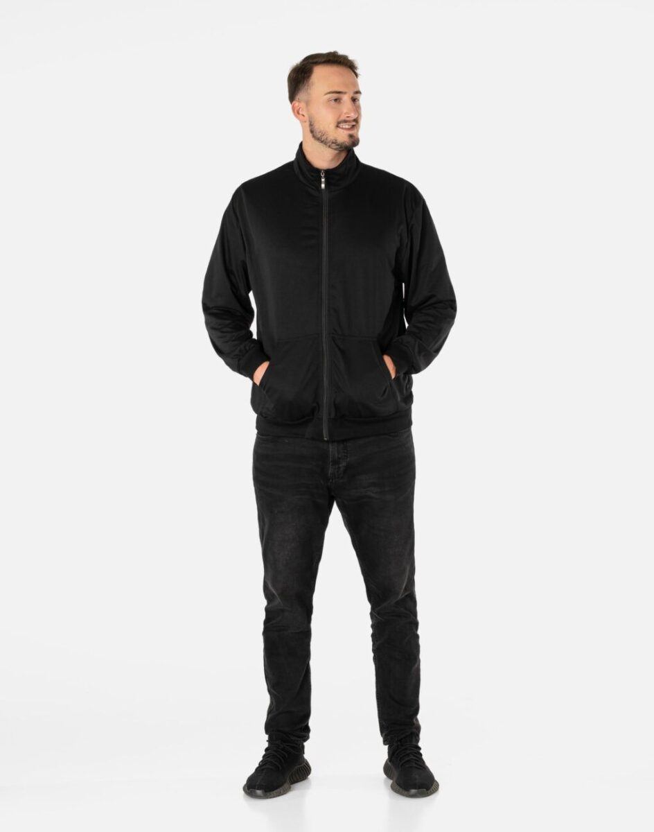 Klasyczna bluza sportowa męska wyprodukowana z dzianiny bawełnianej z dodatkiem poliestru zapewniającej maksymalną wygodę i komfort użytkowania. Naturalna bawełna gwarantuje izolację cieplną, wchłanianie potu i oddychanie skóry, a sam materiał odznacza się dużą miękkością. Dodatek poliestru to gwarancja pełnej swobody ruchów oraz stabilności rozmiarów i koloru po wielokrotnym praniu. Bluza zasuwana jest w całości, łącznie ze stójką na zamek błyskawiczny i posiada dwie kieszenie na dłonie. Dół bluzy oraz rękawy wykończone szerokim elastycznym ściągaczem. Ergonomiczny krój bluzy nie ogranicza swobody ruchów, a właściwe dla odzieży sportowej proporcje surowcowe wpływają pozytywnie na komfort użytkowania. Możesz w niej chodzić na co dzień, idealnie nadaje się również do uprawiania różnych dyscyplin sportu i rekreacji.