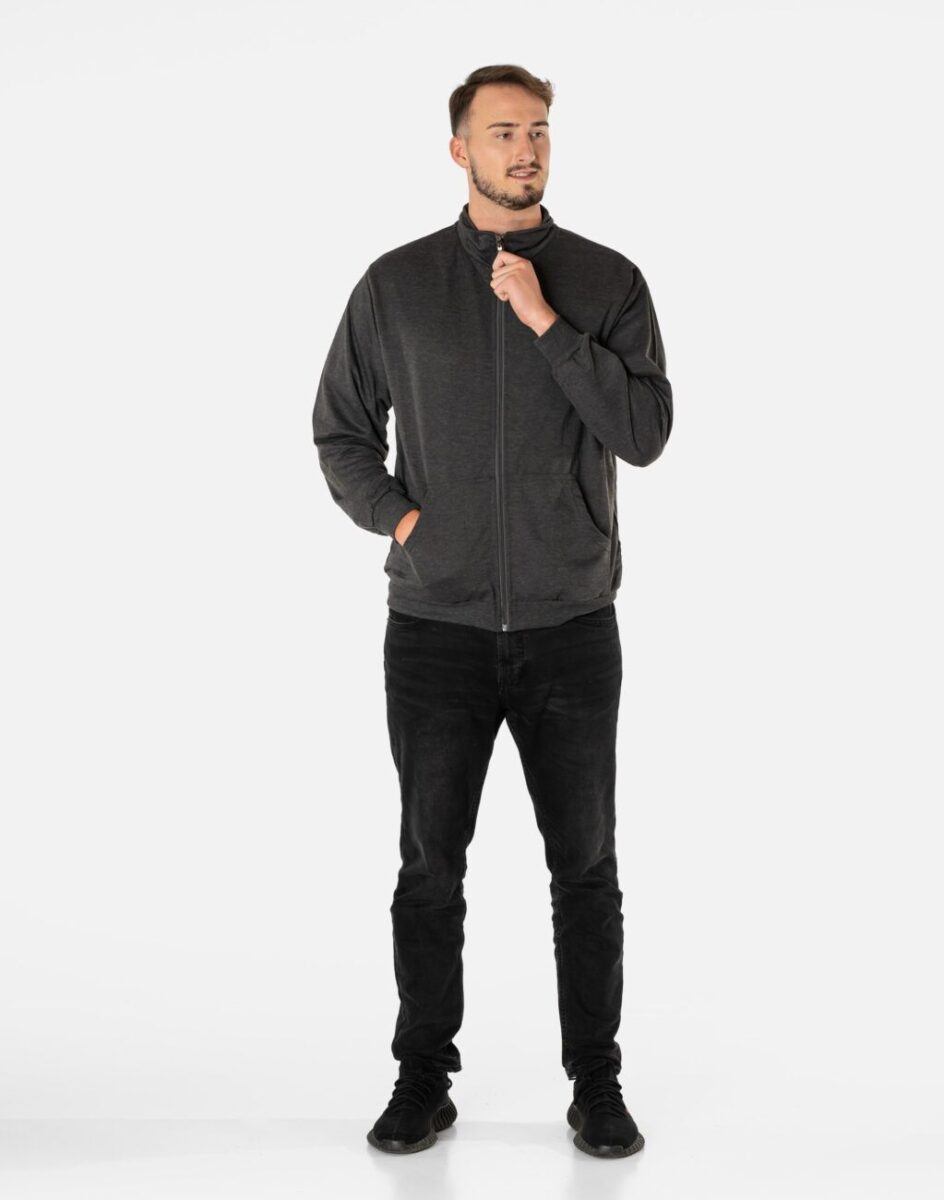 Klasyczna bluza sportowa męska wyprodukowana z dzianiny bawełnianej z dodatkiem poliestru zapewniającej maksymalną wygodę i komfort użytkowania. Naturalna bawełna gwarantuje izolację cieplną, wchłanianie potu i oddychanie skóry, a sam materiał odznacza się dużą miękkością. Dodatek poliestru to gwarancja pełnej swobody ruchów oraz stabilności rozmiarów i koloru po wielokrotnym praniu. Bluza zasuwana jest w całości, łącznie ze stójką na zamek błyskawiczny i posiada dwie kieszenie na dłonie. Dół bluzy oraz rękawy wykończone szerokim elastycznym ściągaczem. Ergonomiczny krój bluzy nie ogranicza swobody ruchów, a właściwe dla odzieży sportowej proporcje surowcowe wpływają pozytywnie na komfort użytkowania. Możesz w niej chodzić na co dzień, idealnie nadaje się również do uprawiania różnych dyscyplin sportu i rekreacji.