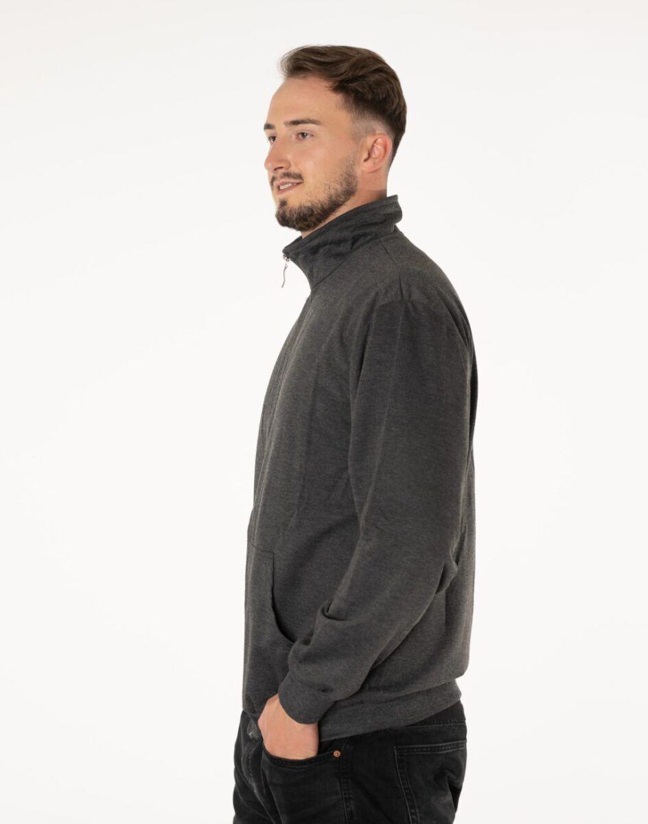Klasyczna bluza sportowa męska wyprodukowana z dzianiny bawełnianej z dodatkiem poliestru zapewniającej maksymalną wygodę i komfort użytkowania. Naturalna bawełna gwarantuje izolację cieplną, wchłanianie potu i oddychanie skóry, a sam materiał odznacza się dużą miękkością. Dodatek poliestru to gwarancja pełnej swobody ruchów oraz stabilności rozmiarów i koloru po wielokrotnym praniu. Bluza zasuwana jest w całości, łącznie ze stójką na zamek błyskawiczny i posiada dwie kieszenie na dłonie. Dół bluzy oraz rękawy wykończone szerokim elastycznym ściągaczem. Ergonomiczny krój bluzy nie ogranicza swobody ruchów, a właściwe dla odzieży sportowej proporcje surowcowe wpływają pozytywnie na komfort użytkowania. Możesz w niej chodzić na co dzień, idealnie nadaje się również do uprawiania różnych dyscyplin sportu i rekreacji.