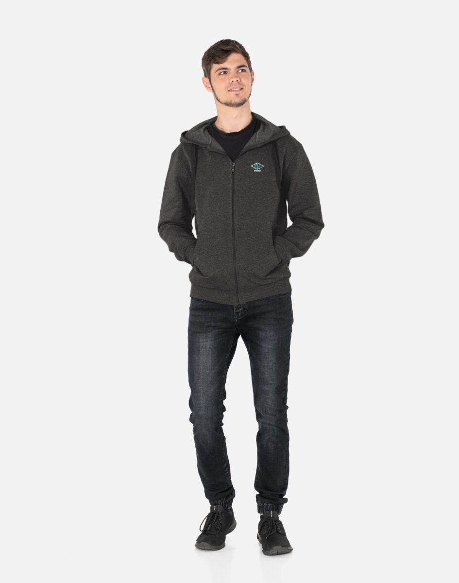 Bluza zasuwana jest w całości na zamek błyskawiczny i posiada dwie wpuszczane kieszenie na dłonie. Dół bluzy oraz rękawy wykończone są szerokim elastycznym ściągaczem, co pozwala na precyzyjne dopasowanie bluzy do ciała i zapobiega utracie ciepła. Długość midi, która z powodzeniem zakrywa części ciała wrażliwe na chłód jak plecy na wysokości nerek i pośladki. Znakomicie sprawdzi się w chłodniejsze dni, a praktyczny kaptur z możliwością regulacji wielkości i dopasowania skutecznie ochroni Twoją głowę przed wiatrem i chłodem. Możesz w niej chodzić na co dzień, idealnie nadaje się również do uprawiania różnych dyscyplin sportu i rekreacji.