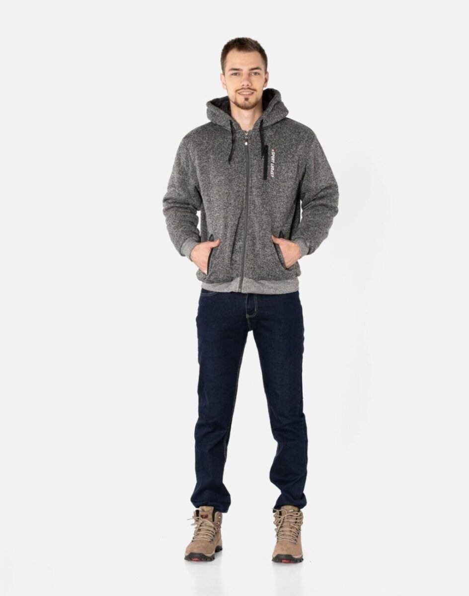 Sportowa bluza męska wykonana z dzianiny bawełnianej o dużej gęstości ( 350 g/m2 ) znakomicie sprawdzi się w chłodne i mroźne dni bo jest wyjątkowo ciepła, wygodna i bardzo modna a praktyczny ocieplony kaptur skutecznie ochroni Twoją głowę przed zimnem i wiatrem. Bluza zasuwana jest w całości na zamek błyskawiczny, posiada dwie wpuszczane kieszenie przednie na dłonie zasuwane na zamki błyskawiczne, i zintegrowany ocieplony futerkiem kaptur z możliwością regulacji jego wielkości i dopasowania. Dół bluzy oraz rękawy wykończone szerokim elastycznym ściągaczem który zapobiega utracie ciepła. Wewnętrzna strona wraz z kapturem wykończona jest ciepłym futerkiem typu „misiu”a zewnętrzna powierzchnia bluzy gładka. Warstwa wewnętrzna wykonana ze sztucznego futerka, ma za zadanie zapewnić oddychalność i maksymalną ochronę termiczną w zmiennych warunkach i niskiej temperaturze. Takie unikalne połączenie ciepłej dzianiny i ciepłego futerka zapewnia bardzo wysoki wskaźnik ochrony termicznej jak również zdecydowanie podnosi komfort użytkowania jesienią a zwłaszcza zimą.