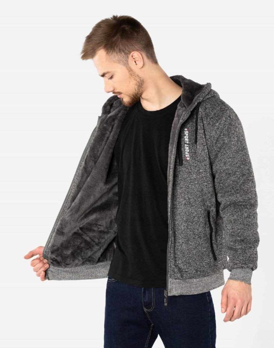 Ciepła sportowa bluza męska z kapturem ocieplona od wewnętrznej strony futerkiem