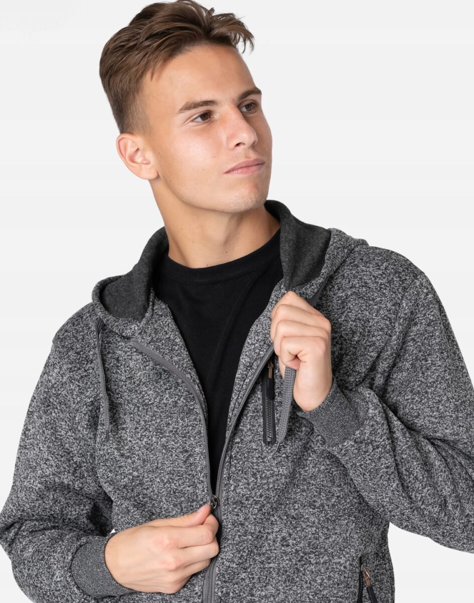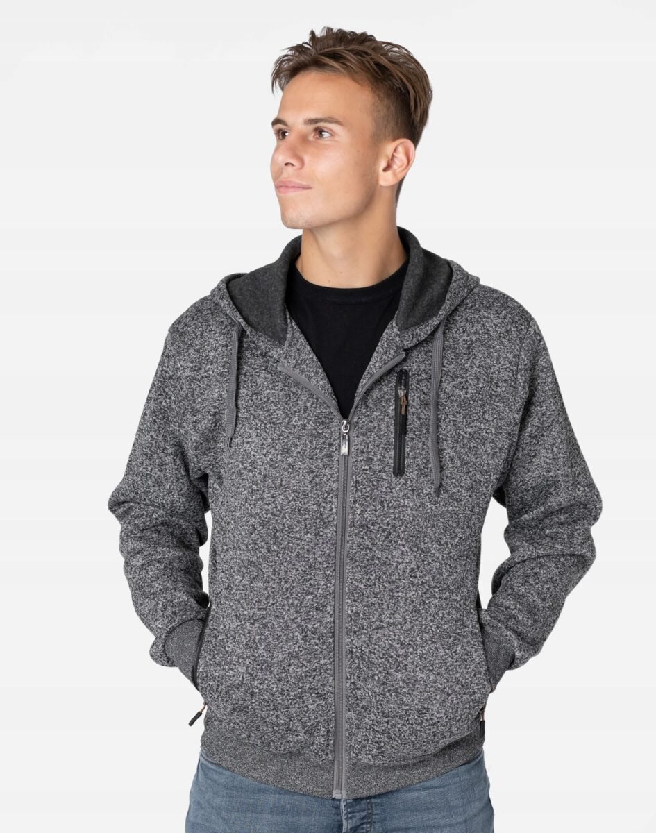 Znakomicie sprawdzi się w chłodniejsze dni bo jest wyjątkowo ciepła i bardzo wygodna a praktyczny kaptur ochroni Twoją głowę i szyję przed zimnem i wiatrem. Bluza zasuwana jest w całości na zamek błyskawiczny, posiada dwie wpuszczane kieszenie na dłonie zasuwane na zamki błyskawiczne oraz jedną zasuwaną kieszeń na lewej piersi. Dół bluzy oraz rękawy wykończone szerokim elastycznym ściągaczem co pozwala na precyzyjne dopasowanie bluzy do ciała i zapobiega utracie ciepła. Długość midi, która z powodzeniem zakrywa części ciała wrażliwe na chłód jak plecy na wysokości nerek.
