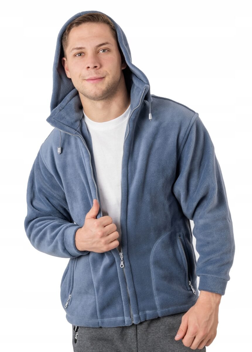 Sportowa ciepła bluza polarowa męska z kapturem