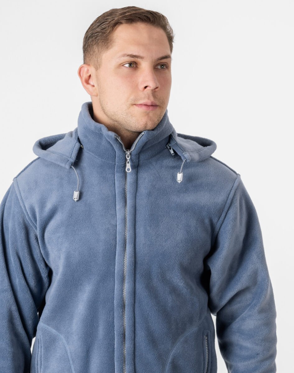 Bluza zasuwana jest w całości na zamek błyskawiczny. Posiada dwie wpuszczane kieszenie na dłonie i dwie zasuwane na eklery. Rękaw długi zakończony szerokim mankietem. Wysoki kołnierz/stójka skutecznie chroni podbródek i szyję a często zastępuje nawet szalik co jest bardzo wygodne. Ściągacze regulacyjne na dole bluzy z gumką i stoperem pozwalają na precyzyjne dopasowanie bluzy do ciała co znacznie zapobiega utracie ciepła. Znakomicie sprawdzi się w chłodniejsze dni a ciepły, odpinany kaptur osłoni Twoją głowę przed wiatrem i chłodem.
