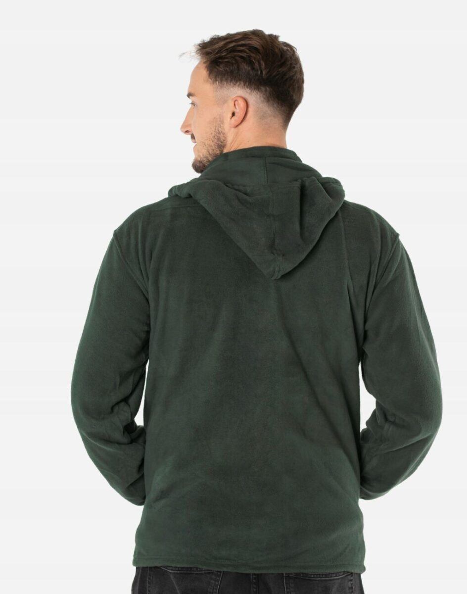 Bluza zasuwana jest w całości na zamek błyskawiczny i posiada dwie wpuszczane kieszenie na dłonie. Na lewej piersi znajduje się pozioma kieszonka zasuwana na zamek błyskawiczny. Praktyczny odpinany na zamek błyskawiczny kaptur – posiada możliwość regulacji jego wielkości i dopasowania 2D za pomocą taśmy ściągającej skutecznie osłoni Twoją głowę przed deszczem, wiatrem i chłodem. Wysoki kołnierz/stójka chroni podbródek i szyję a często zastępuje nawet szalik co jest bardzo wygodne. Rękawy bluzy wykończone są elastycznym ściągaczem, który zapobiega utracie ciepła. Długość do bioder, która z powodzeniem zakrywa części ciała wrażliwe na chłód jak plecy na wysokości nerek i pośladki. Znakomicie sprawdzi się w chłodniejsze dni bo jest ciepła, wygodna.