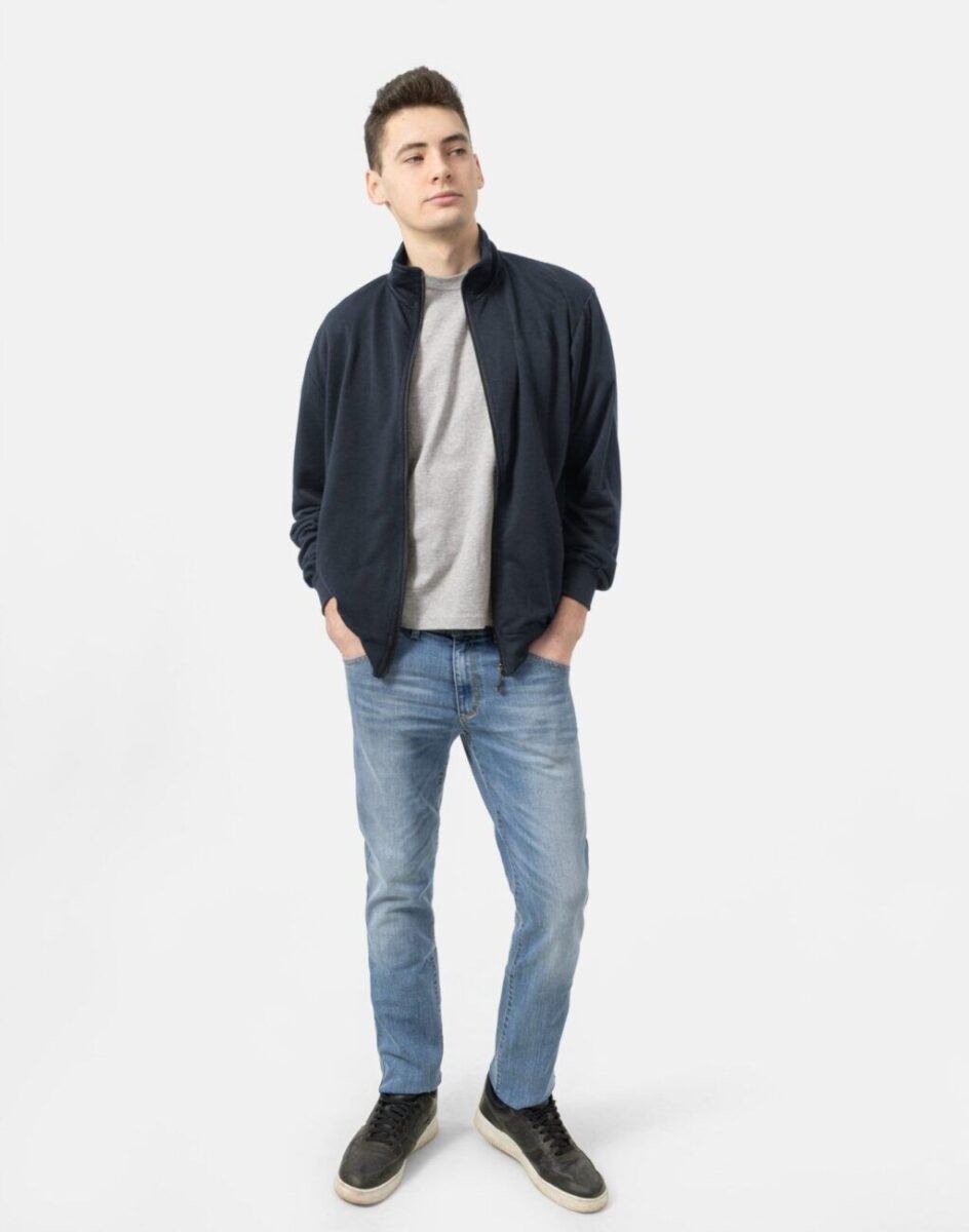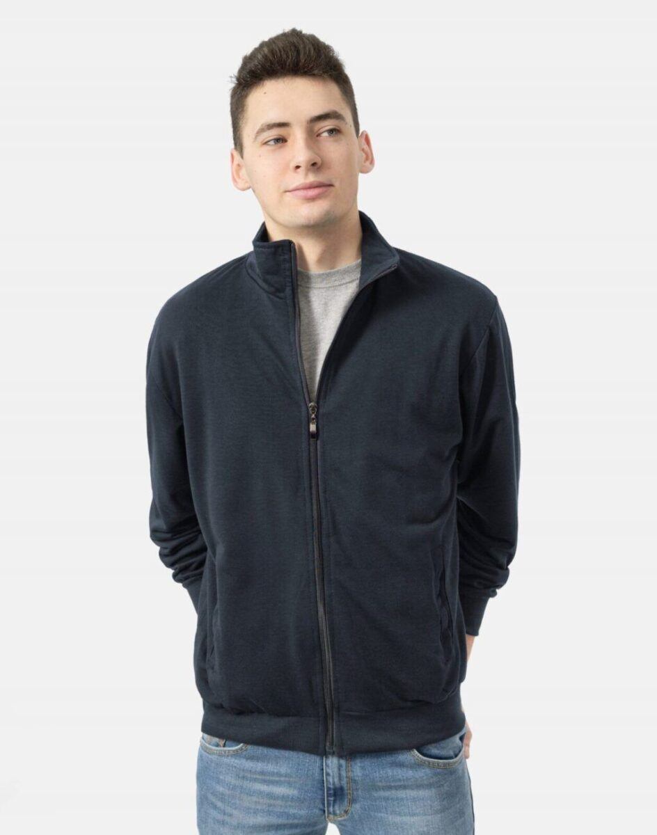 Bluza uszyta jest z cienkiej dzianiny dresowej bawełnianej z dodatkiem poliestru. Naturalna bawełna gwarantuje wchłanianie potu i oddychanie skóry, a sam materiał odznacza się dużą oddychalnością. Dodatek poliestru to gwarancja pełnej swobody ruchów oraz stabilności rozmiarów i koloru po wielokrotnym praniu. Bluza zasuwana jest w całości na zamek błyskawiczny i posiada dwie kieszenie przednie na dłonie. Dół bluzy oraz rękawy wykończone szerokim elastycznym ściągaczem. Możesz w niej chodzić na co dzień, idealnie nadaje się również do uprawiania różnych dyscyplin sportu i rekreacji. Niepodważalną zaletą bluzy jest możliwość noszenia jej w różnych warunkach pogodowych. Zapewniała ciepło i wygodę w czasie wietrznej pogody, a wraz ze wzrostem temperatury wystarczy rozpiąć zamek by poczuć się w niej komfortowo. Ergonomiczny krój bluzy nie ogranicza swobody ruchów, a właściwe dla odzieży sportowej proporcje surowcowe i niewielka gramatura wpływają pozytywnie na komfort użytkowania.