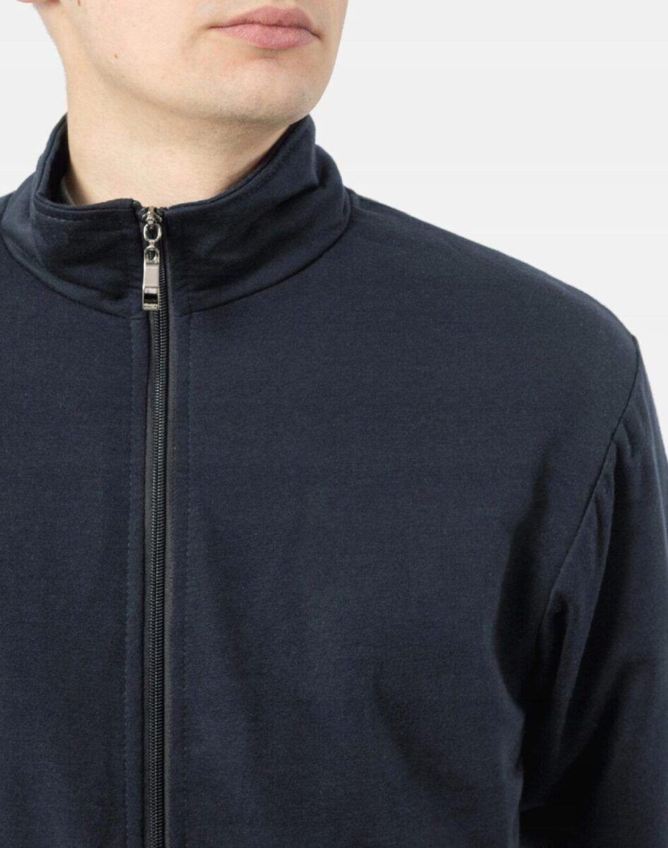 Bluza uszyta jest z cienkiej dzianiny dresowej bawełnianej z dodatkiem poliestru. Naturalna bawełna gwarantuje wchłanianie potu i oddychanie skóry, a sam materiał odznacza się dużą oddychalnością. Dodatek poliestru to gwarancja pełnej swobody ruchów oraz stabilności rozmiarów i koloru po wielokrotnym praniu. Bluza zasuwana jest w całości na zamek błyskawiczny i posiada dwie kieszenie przednie na dłonie. Dół bluzy oraz rękawy wykończone szerokim elastycznym ściągaczem. Możesz w niej chodzić na co dzień, idealnie nadaje się również do uprawiania różnych dyscyplin sportu i rekreacji. Niepodważalną zaletą bluzy jest możliwość noszenia jej w różnych warunkach pogodowych. Zapewniała ciepło i wygodę w czasie wietrznej pogody, a wraz ze wzrostem temperatury wystarczy rozpiąć zamek by poczuć się w niej komfortowo. Ergonomiczny krój bluzy nie ogranicza swobody ruchów, a właściwe dla odzieży sportowej proporcje surowcowe i niewielka gramatura wpływają pozytywnie na komfort użytkowania.