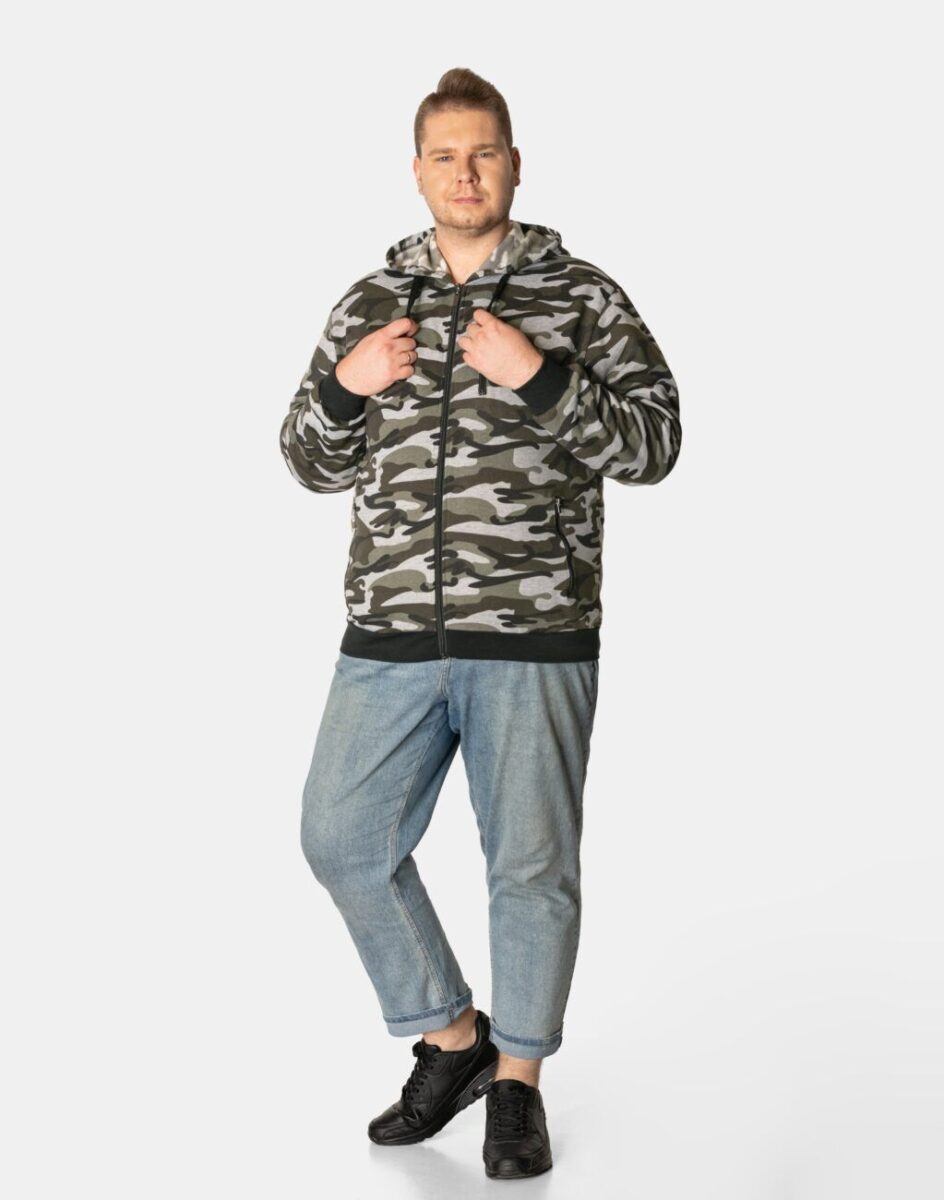 Sportowa Bluza Męska Zasuwana na Zamek z Kapturem – Moro Camo