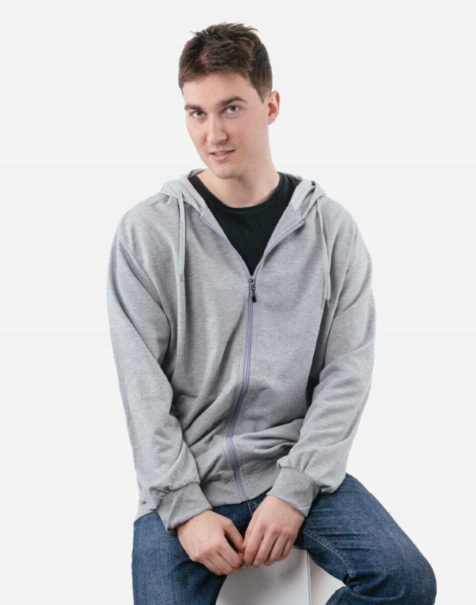 Sportowa cienka bluza męska bawełniana z kapturem
