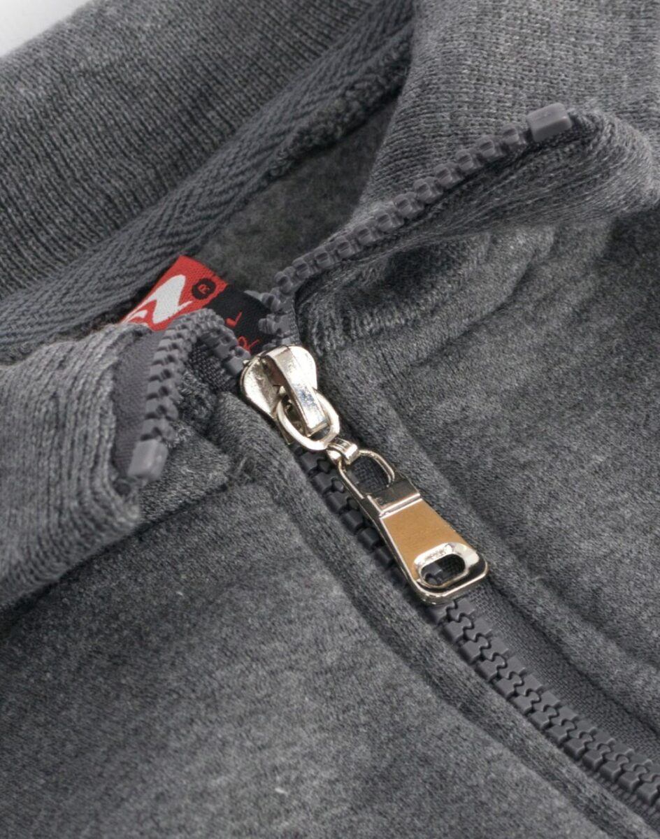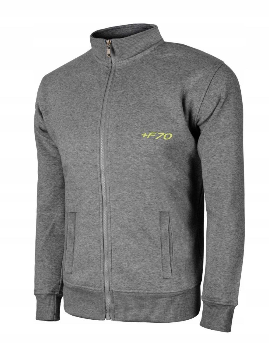 Bluza zasuwana jest w całości na zamek błyskawiczny. Posiada dwie duże kieszenie przednie na dłonie. Szerokie, elastyczne ściągacze przy rękawach oraz na dole bluzy. Pod szyją stójka. Wykonana z tkaniny bawełnianej z dodatkiem poliestru. Dodatek poliestru to gwarancja stabilności rozmiarów po wielokrotnym praniu. Jest ciepła, wygodna i praktyczna, a jej wewnętrzna strona wykończona miłym w dotyku i przyjemnym dla ciała meszkiem tzw. „szczotkowana”. Zewnętrzna powierzchnia bluzy gładka.